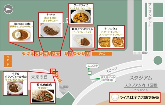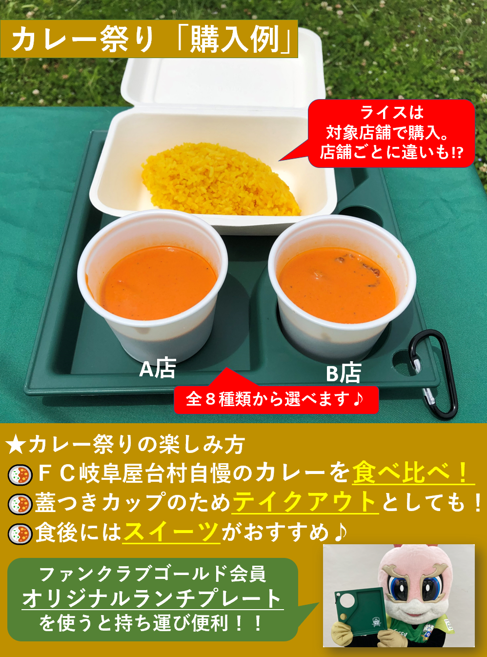 テイクアウト可能な専用容器にて販売しますので、試合のチケットがなくても購入可能です。大人も子どもも大好きなカレー!FC岐阜自慢のカレーを食べ比べよう!