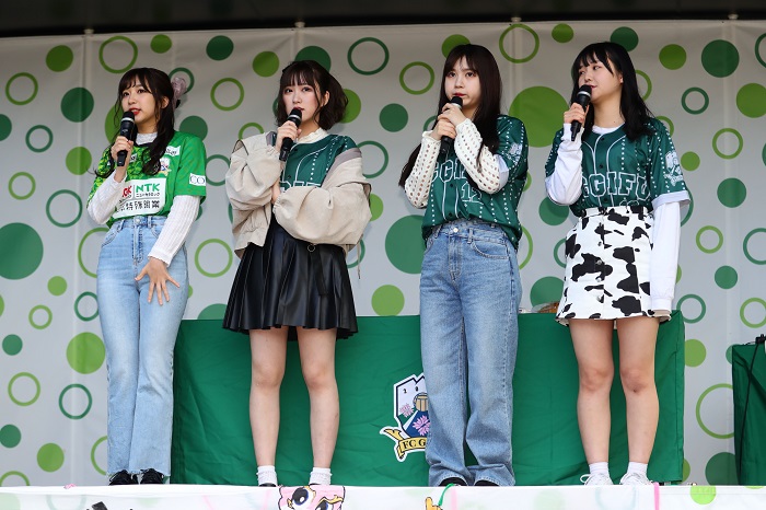 FC岐阜応援隊の『SKE48』から応援隊長の北野 瑠華さん、応援副隊長の太田彩夏さん、佐藤 佳穂さん、菅原 茉椰 さんが登場し、かさなるステージを華やかに盛り上げます!