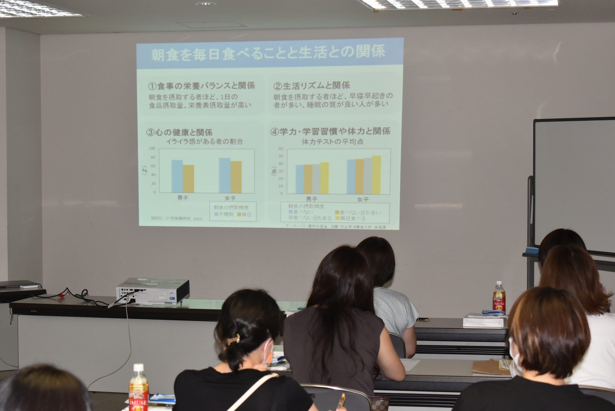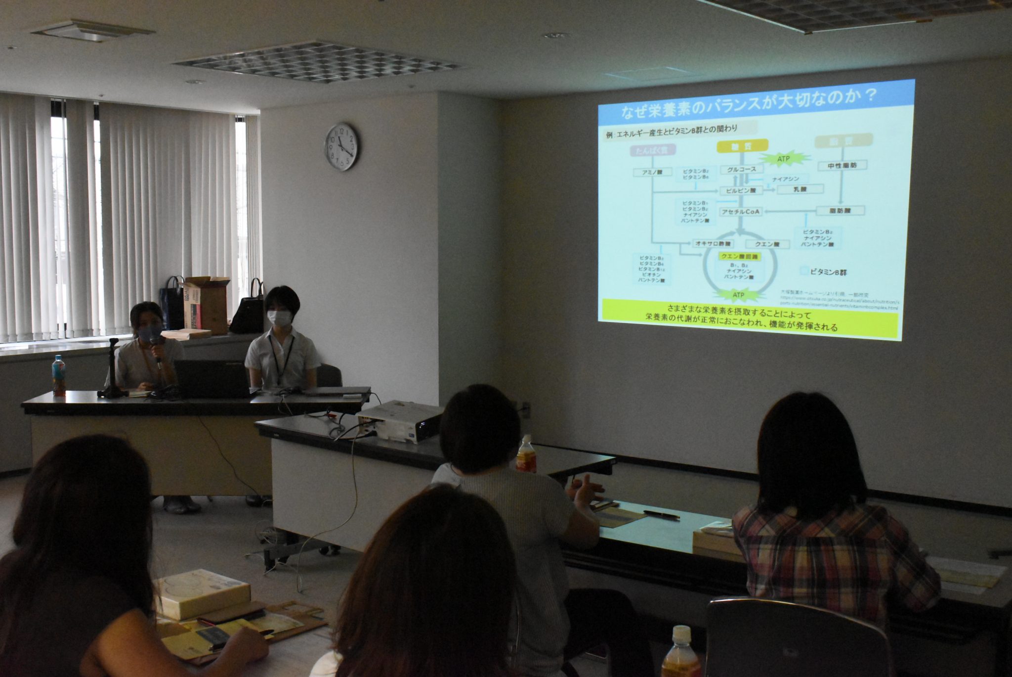 はじめに、各務原市役所の管理栄養士から「栄養バランスの大切さ」「朝食を摂取する大切さ」についてお話いただきました。