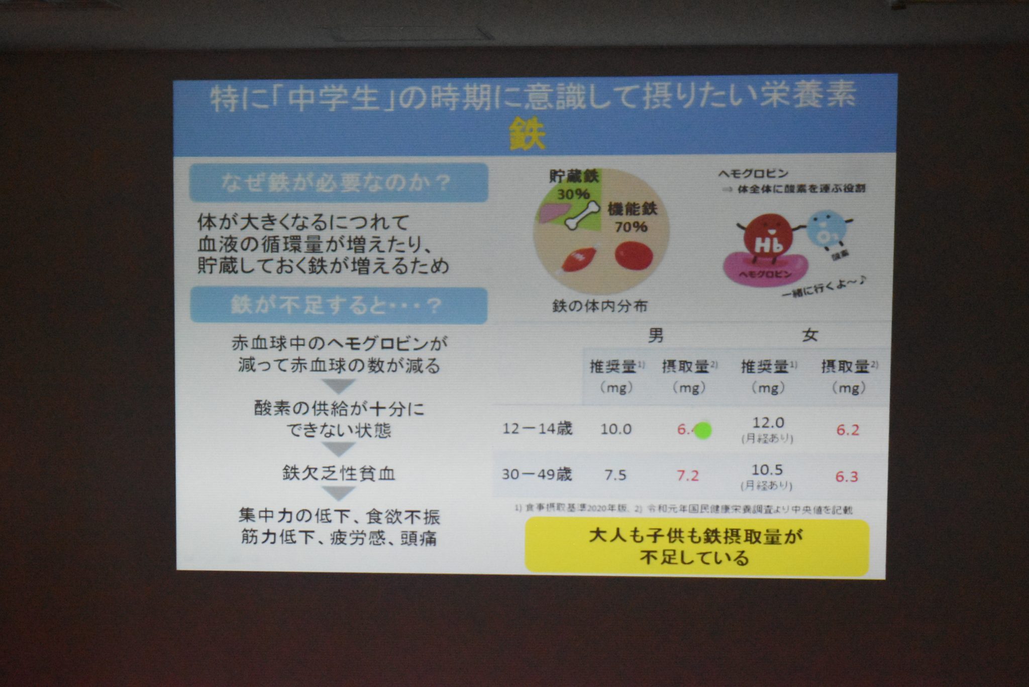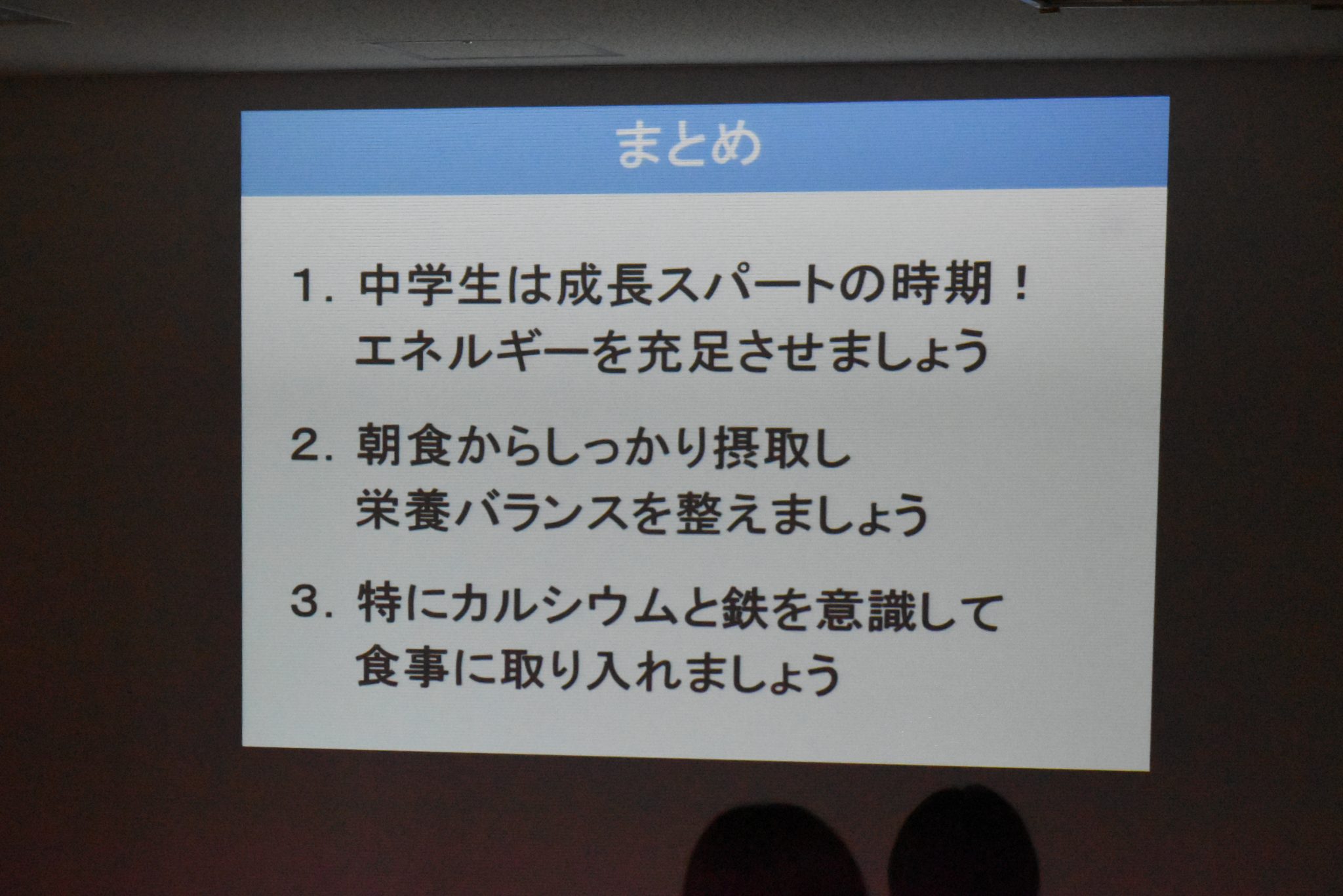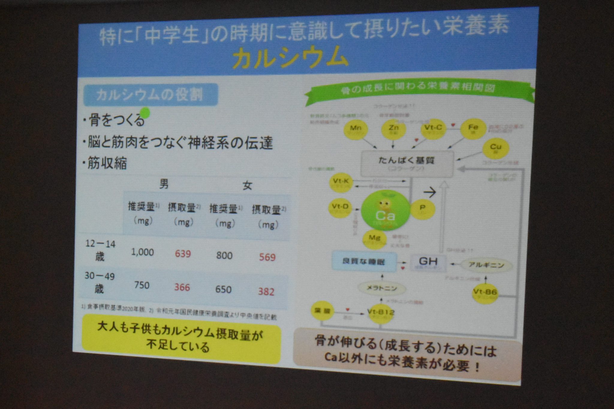 そのなかでも特に成長期の中学生は「カルシウム」と「鉄分」を意識して摂取することが大切だと教えていただきました。