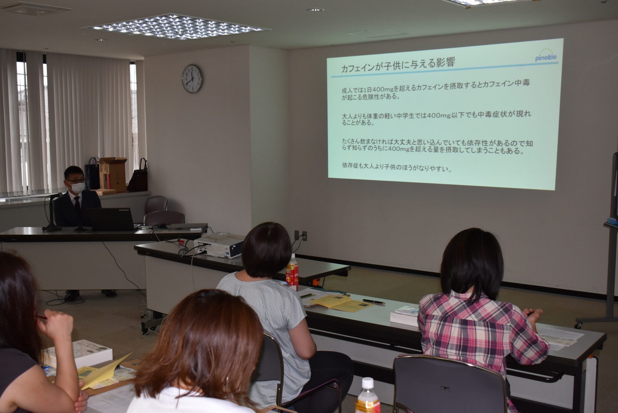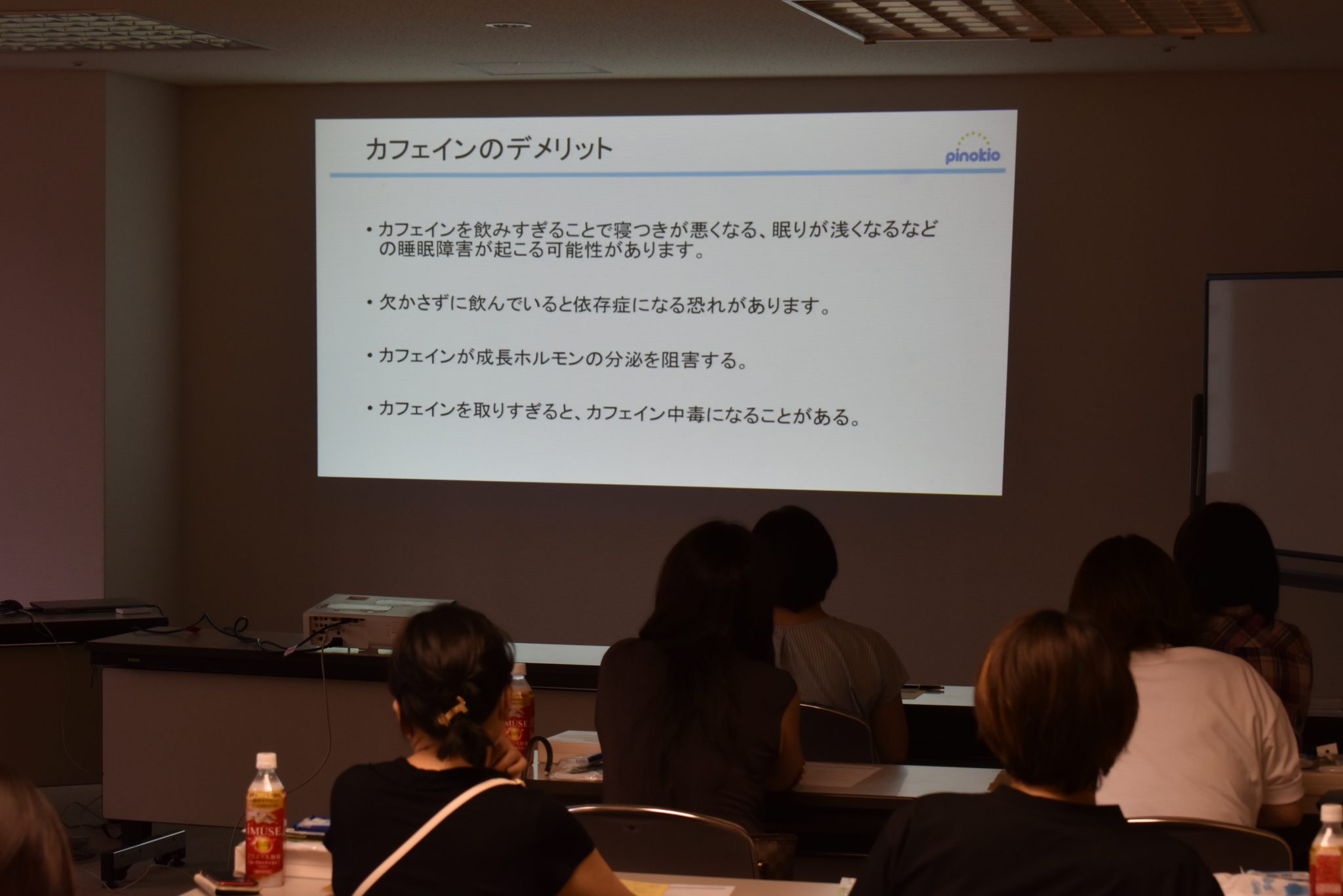 また、「高濃度カフェインの危険性」についてもお話いただき、適度なカフェインの摂取は問題ないが、カフェインを摂取しすぎるとカフェイン依存症になってしまうことや、睡眠障害などを起こす可能性があることを教えていただきました。