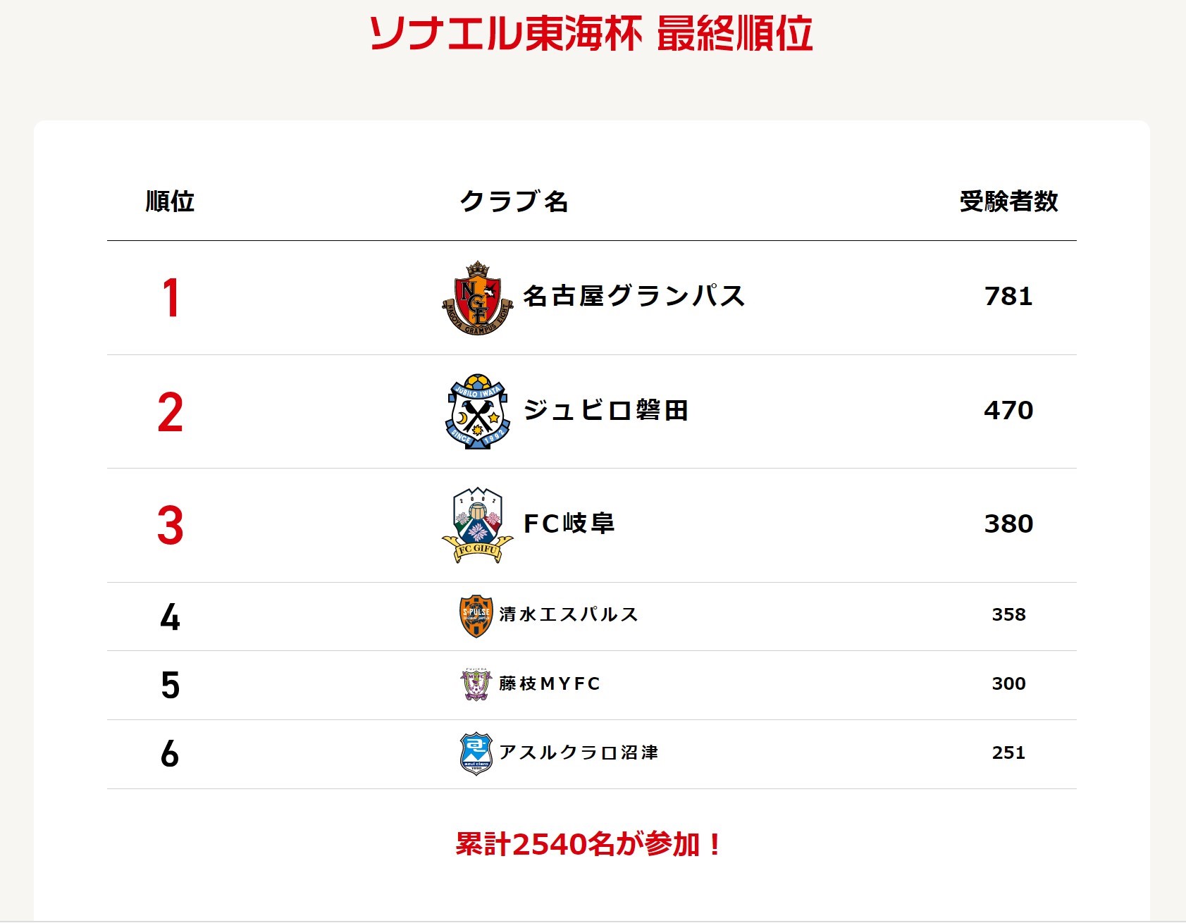 6月10日(木)から6月30日(水)にかけて開催された「ヤフー防災 ソナエル東海杯」について、最終順位及びベストイレブンが発表されましたのでお知らせいたします。
