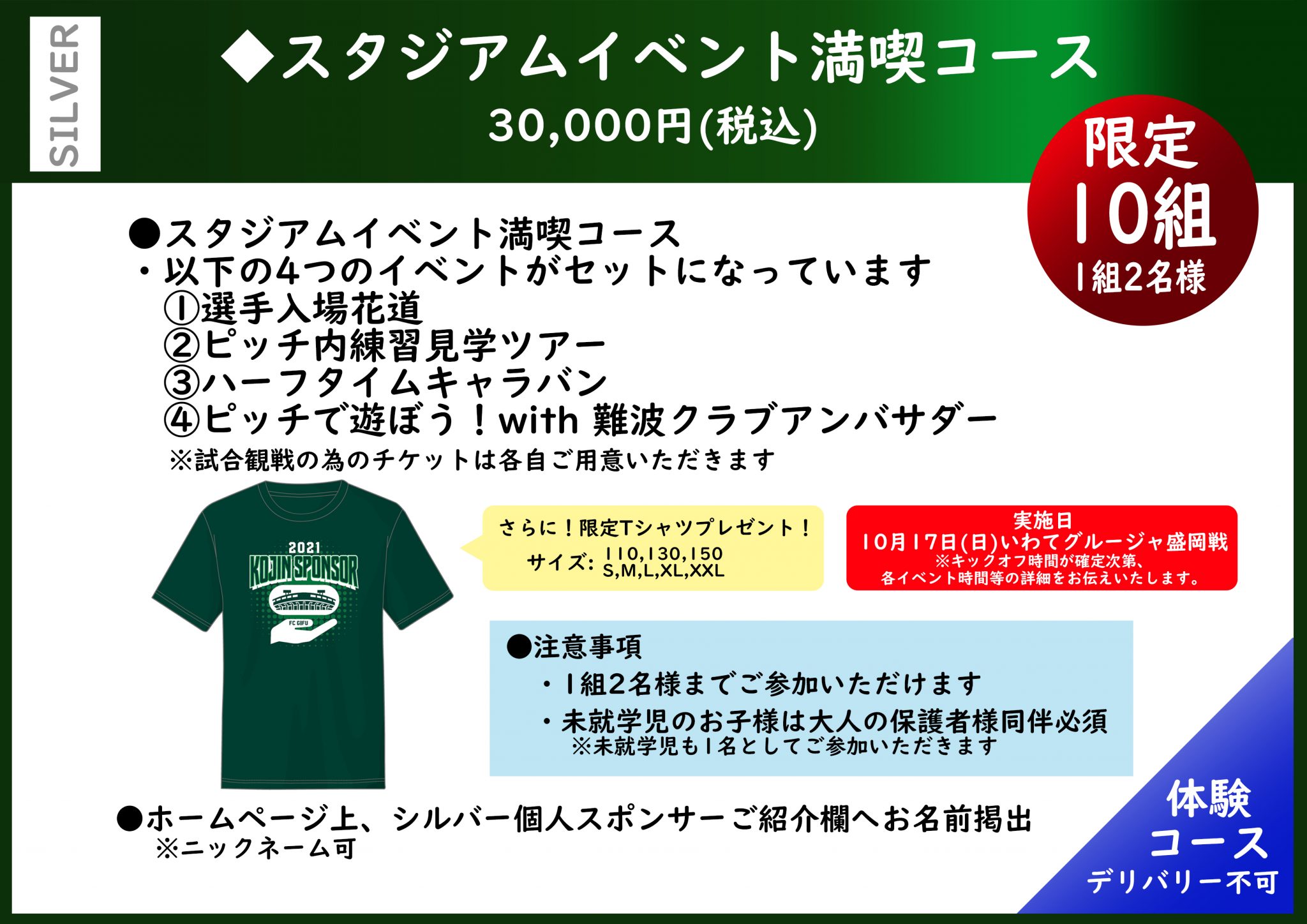 ◆こちらのコースは事前お申し込みはできません。8月28日(土)福島戦以降、スタジアムにて限定販売(数量限定)です。