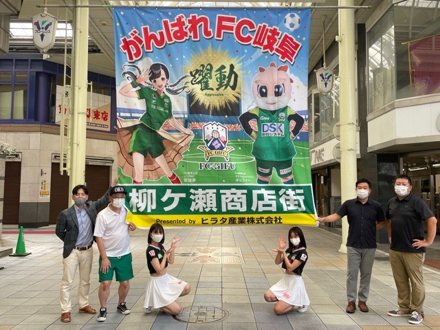 本年も、岐阜柳ケ瀬商店街に柳ケ瀬本通会、スタープレイス柳ケ瀬商店街振興組合、ヒラタ産業株式会社様のご協力で、『FC岐阜』応援大型フラッグを掲出していただきました。