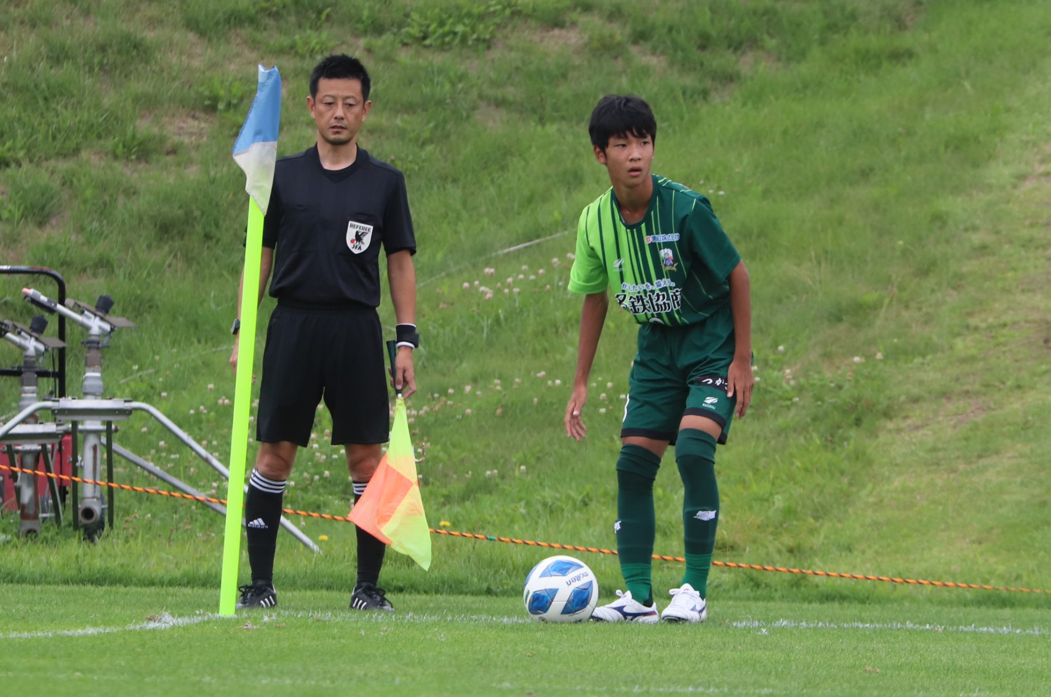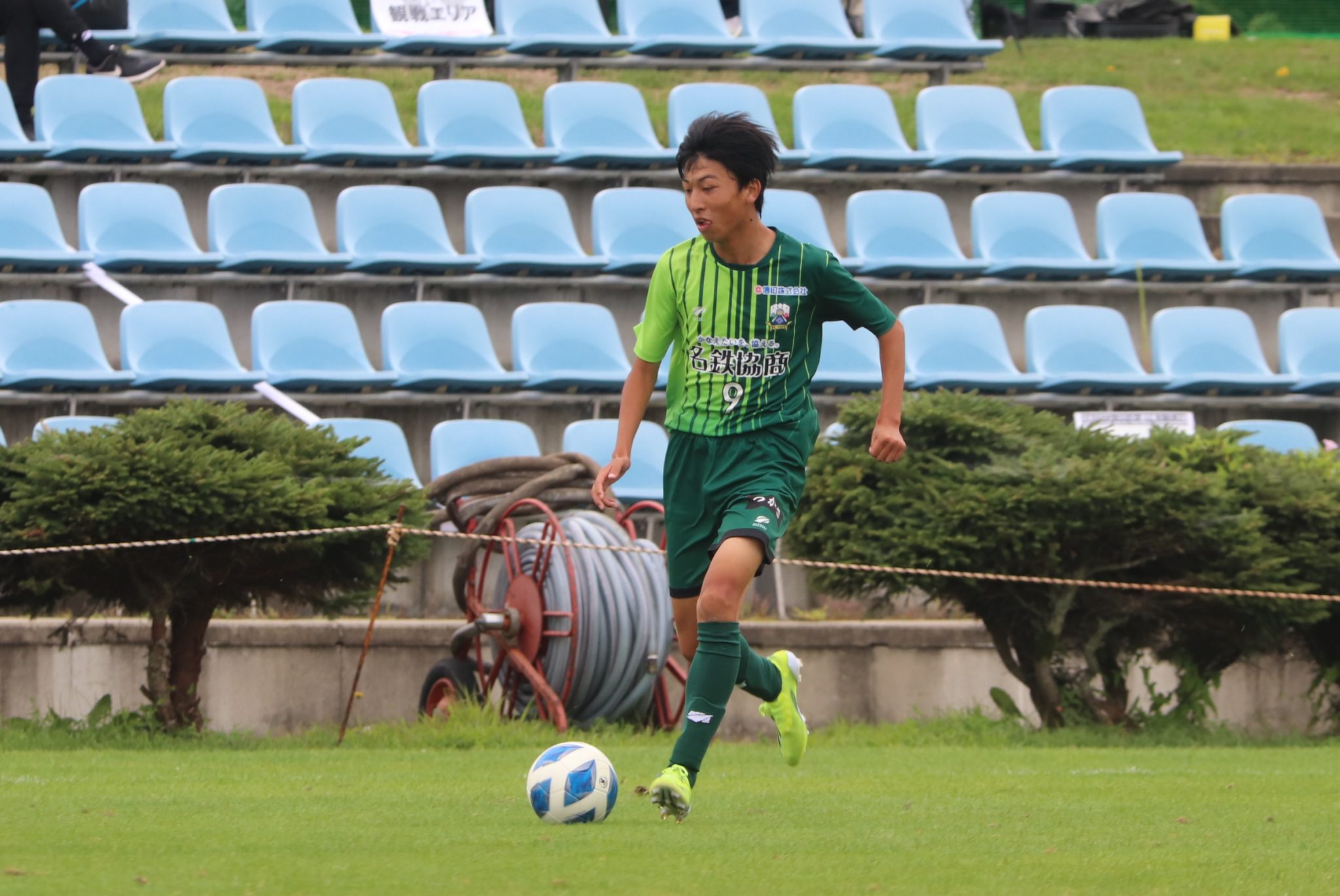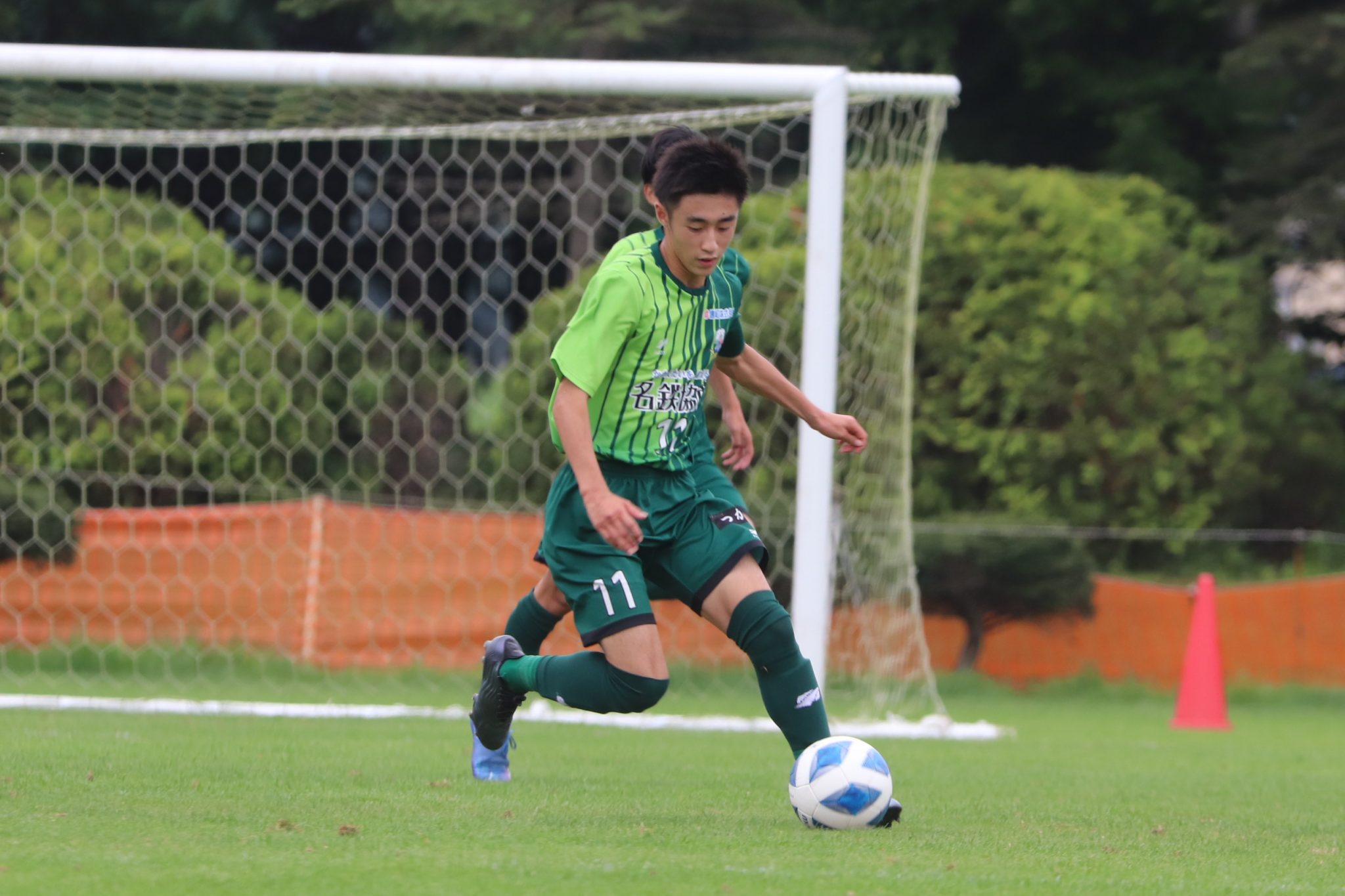 前半を終えて1-1。先制点を奪われる厳しい展開の中、出口達也選手がロングボールに抜け出して冷静にフィニッシュ。ディフェンス陣も体を張った守備で追加点を許しません。