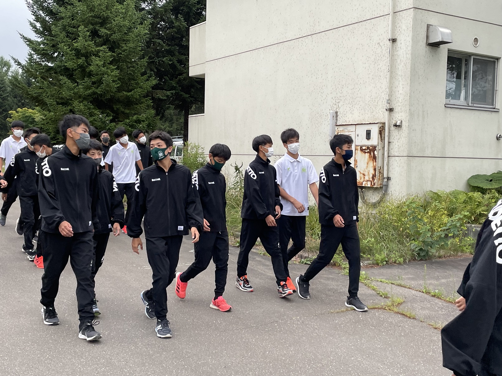 ストレッチの後は宿舎の近くを散歩。朝晩は長袖を着ないと寒いぐらいですが、中には半袖の選手もいてみんな元気に過ごしています。