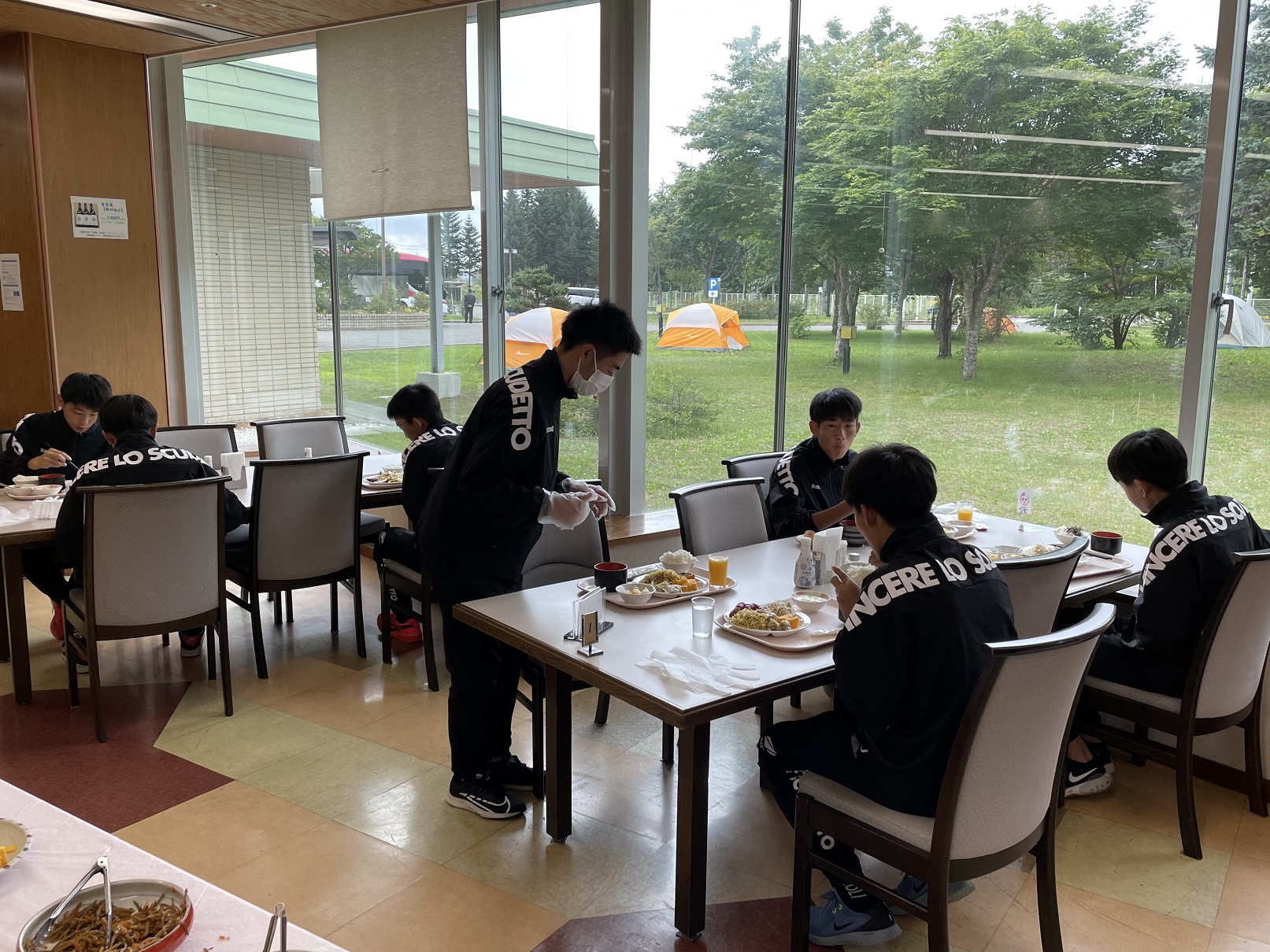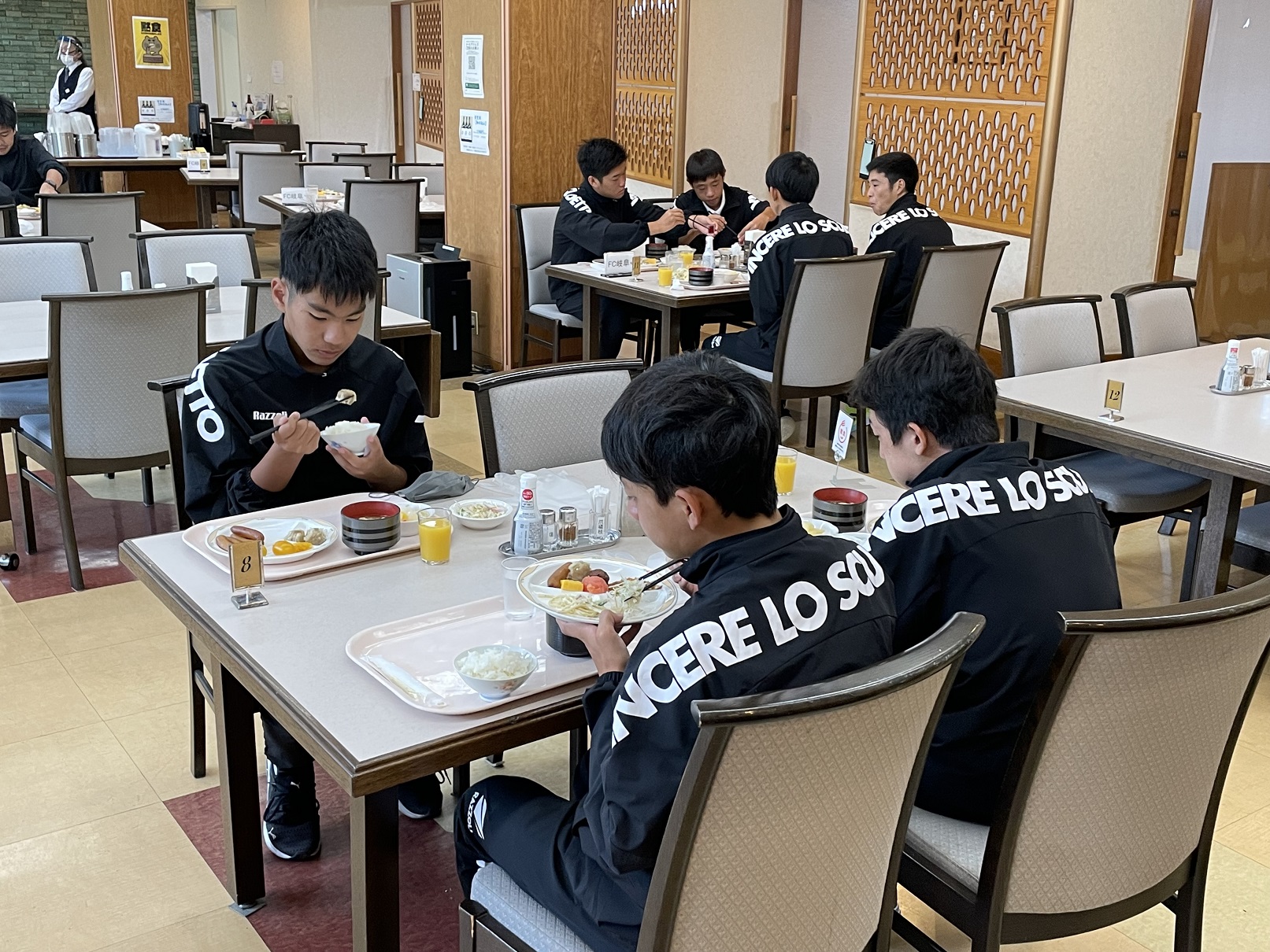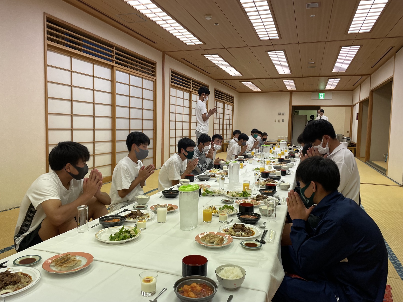 全員楽しみな夕食。毎食美味しいご飯をいただき、試合へのパワーを蓄えます!