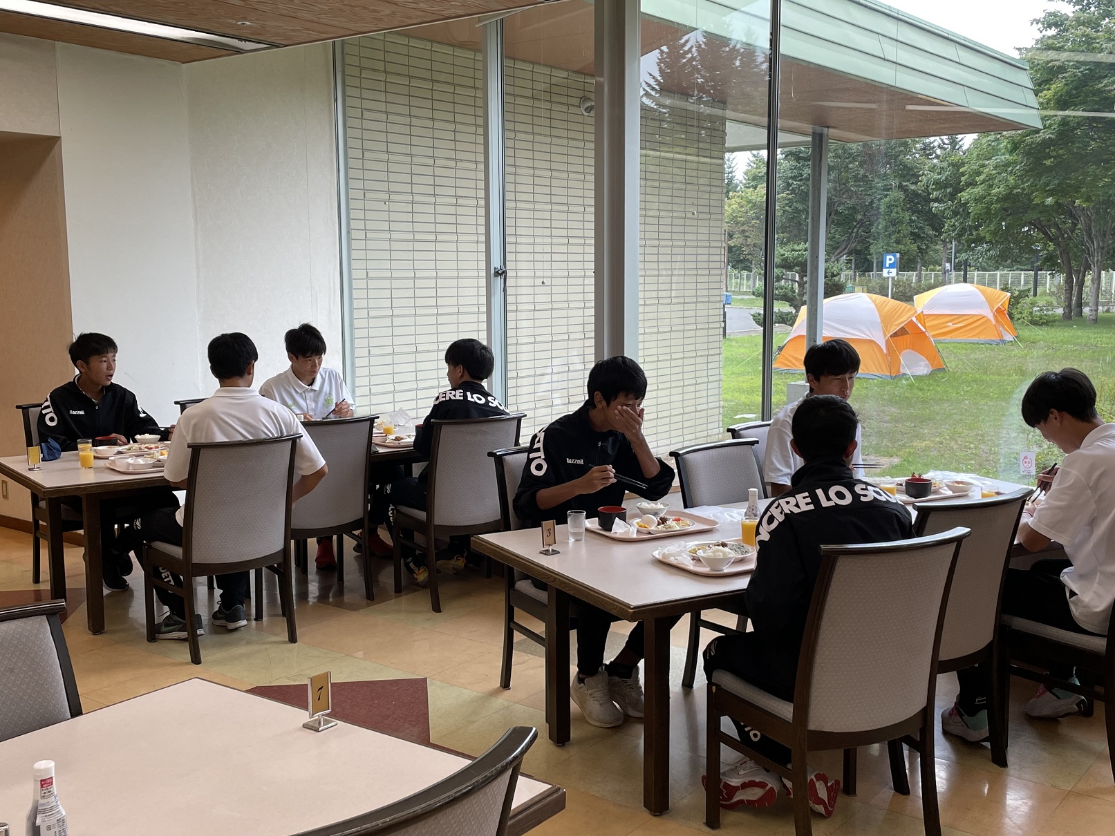 散歩の後は朝食を食べて試合に向けて準備していきます。