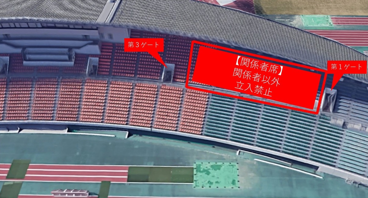 鳥取戦において「関係者席」を設置するため、下図の赤枠部分において一般の方の観戦はできません。