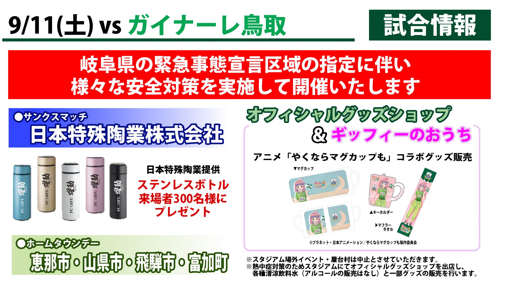 ※ガイナーレ鳥取戦も「緊急事態宣言」区域指定に伴う対応を行い開催します。