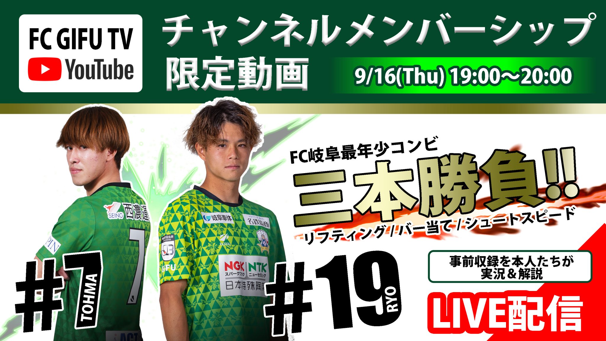 9月16日(木)18:30頃にFC岐阜公式YouTubeチャンネル「FC GIFU TV」のコミュニティタブにて配信URLをメンバー限定にお送りします。