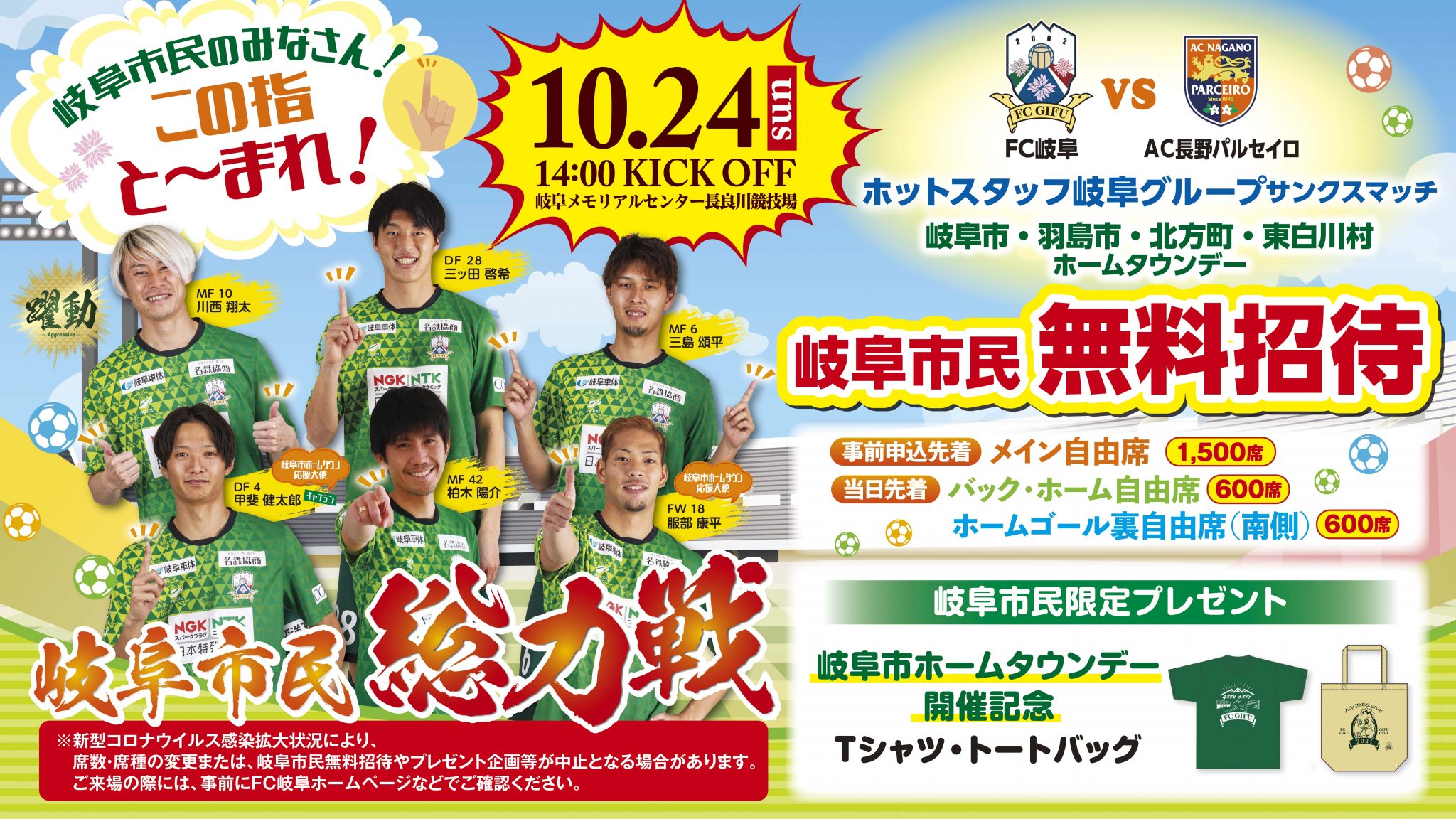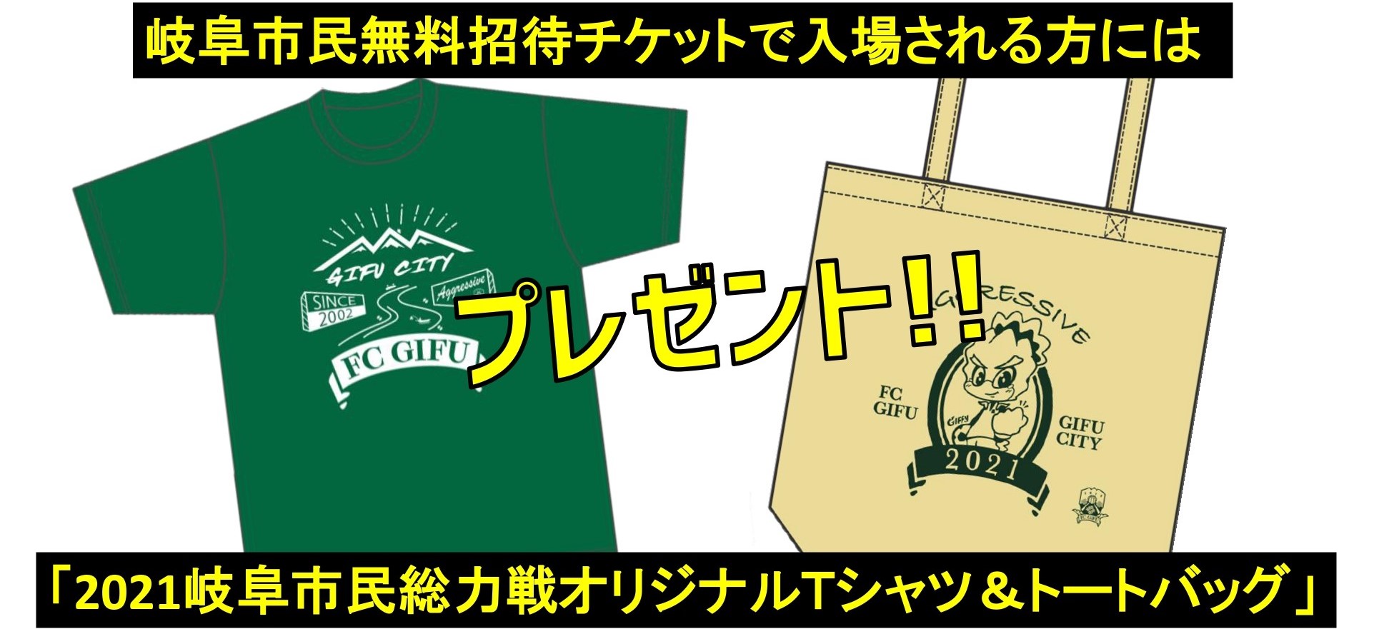 岐阜市ホームタウンデー開催を記念して、岐阜市民限定でFC岐阜Tシャツ、トートバッグを3,000名様にプレゼント!