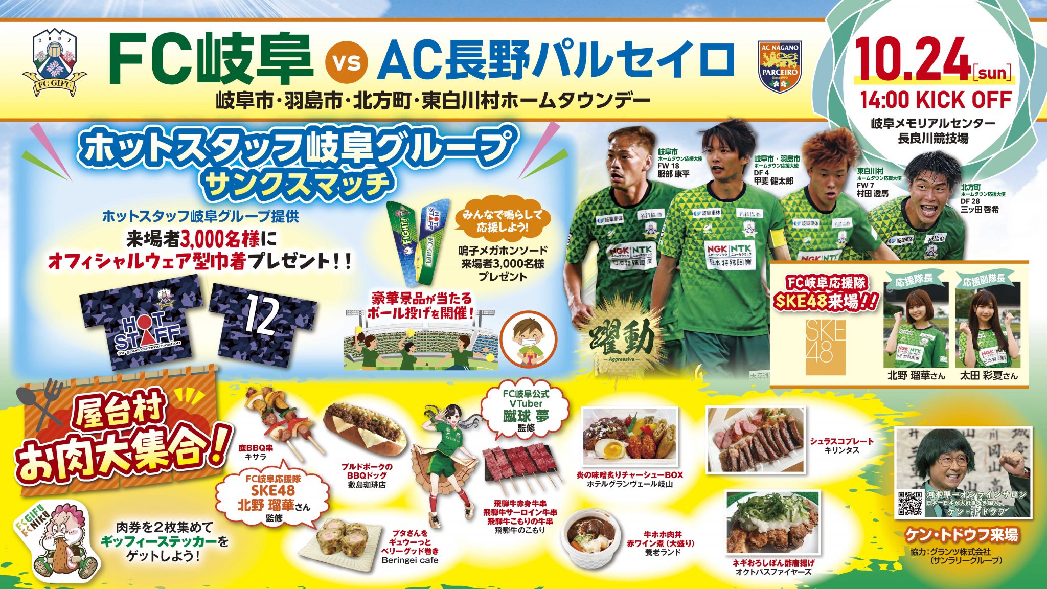 【ギッフィーステッカーの配布終了】10/24(日)14:03 vsAC長野パルセイロ、試合情報