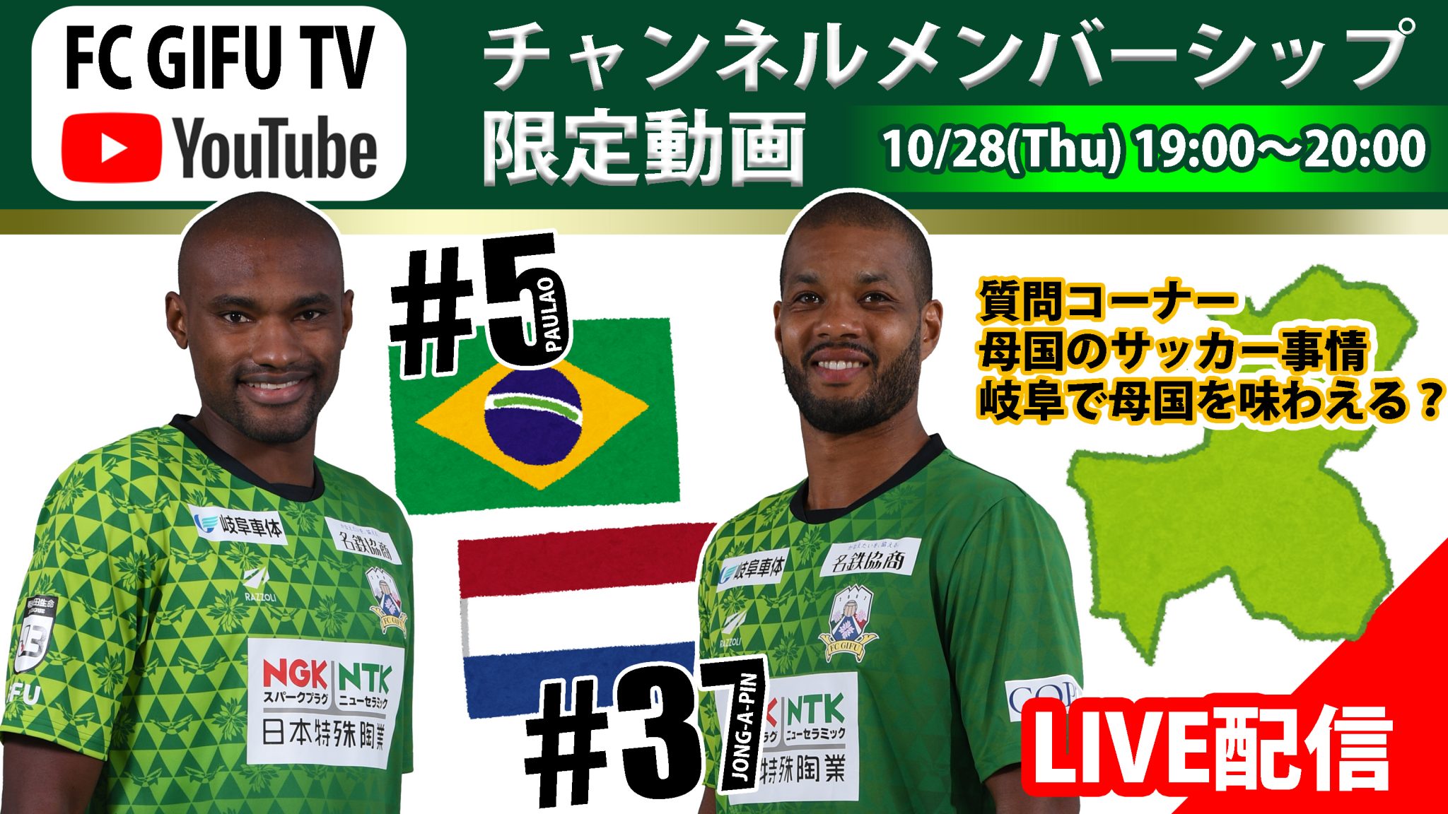 10月28日(木)18:30頃にFC岐阜公式YouTubeチャンネル「FC GIFU TV」のコミュニティタブにて配信URLをメンバー限定にお送りします。
