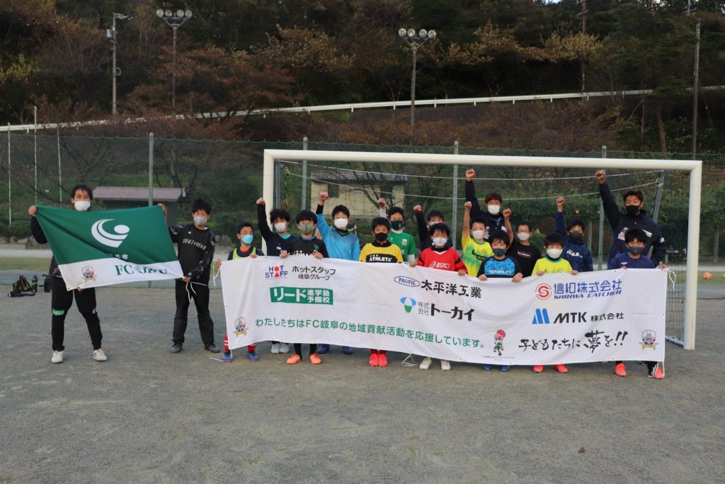 サッカー教室ではコロナ禍の状況を考慮し、手指消毒の徹底や過度な接触の抑制などを定めた「FC岐阜ホームタウン活動新型コロナウィルス感染対策ガイドライン」をもとに実施いたしました。