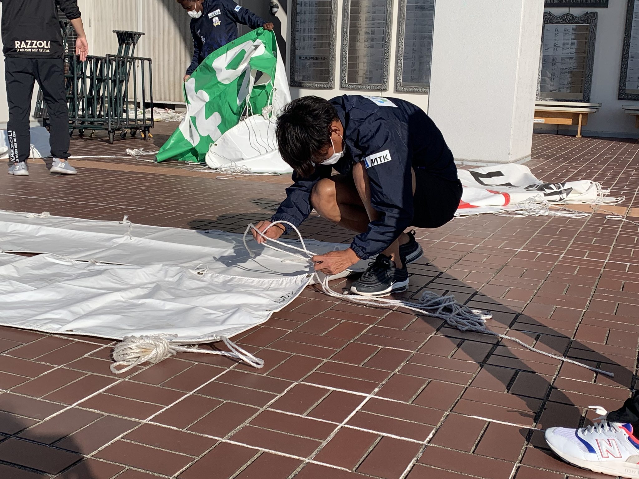 選手は初めての設営で最初は戸惑いながら行っていましたが、すぐにコツを掴み黙々と準備を進めていました。