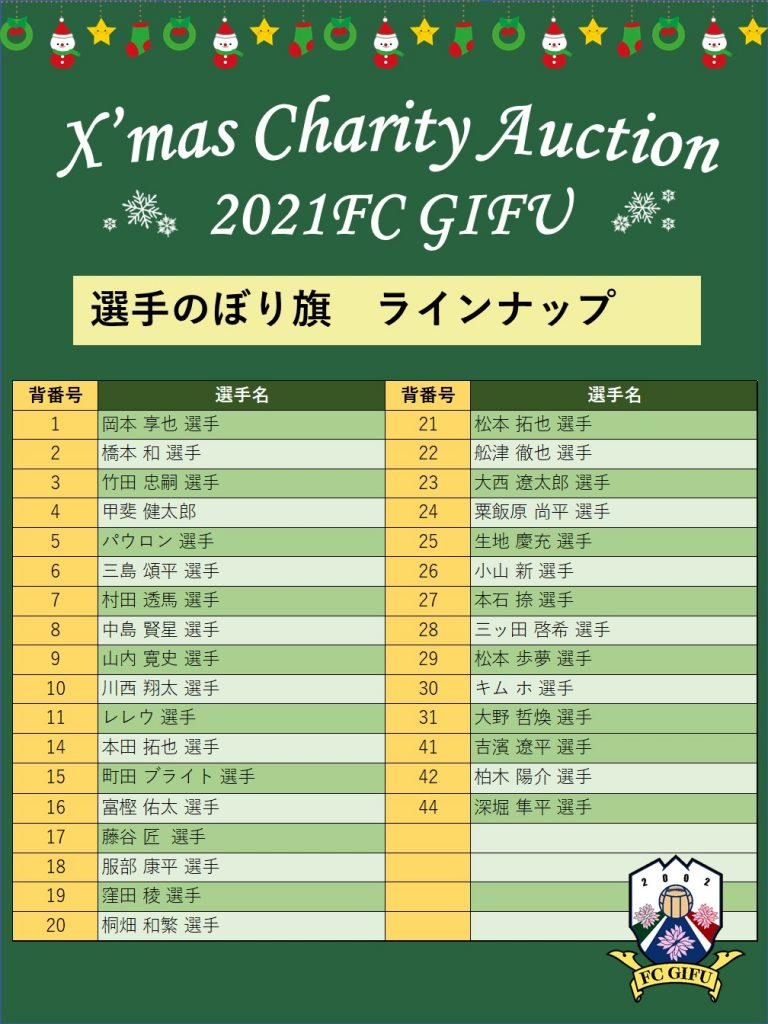 ●FC岐阜2021クリスマスチャリティオークション【14:00~15:00】
