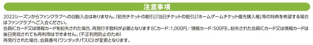 ※ファンクラブへの自動入会はございません。「前売チケットの割引」等の特典もシーズンシートには付与されておりませんので、予めご承知おきください。
