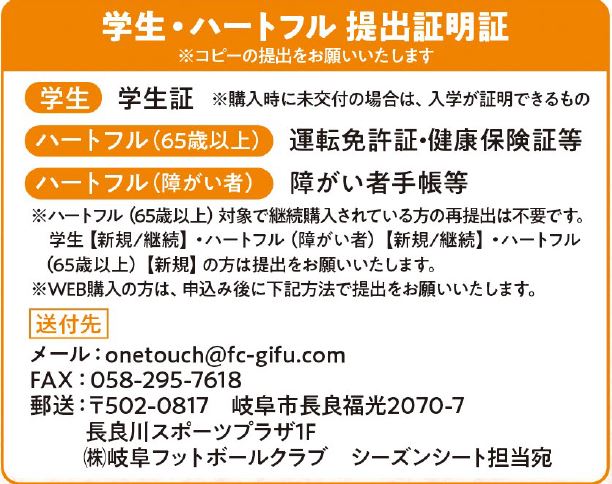 ①2022シーズンシート購入者は、別途定める「FC岐阜シーズンシート会員規約」を事前に確認し、同意した上で購入手続きをお願いいたします。