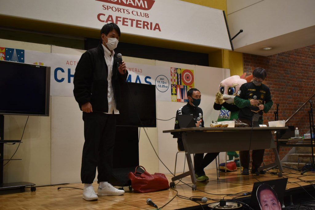 松本 拓也 選手がサプライズで登場し、2022シーズンもFC岐阜で共に戦うことを発表しました。