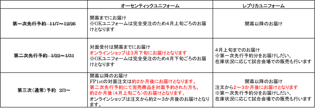 ■先行予約期間についてオーセンティックユニフォーム第一次先行予約期間:2021年11月7日 (日)~ 2021年12月26日(日)オーセンティックユニフォーム第二次先行予約期間:2022年1月22日(土)~2022年1月31日(月)