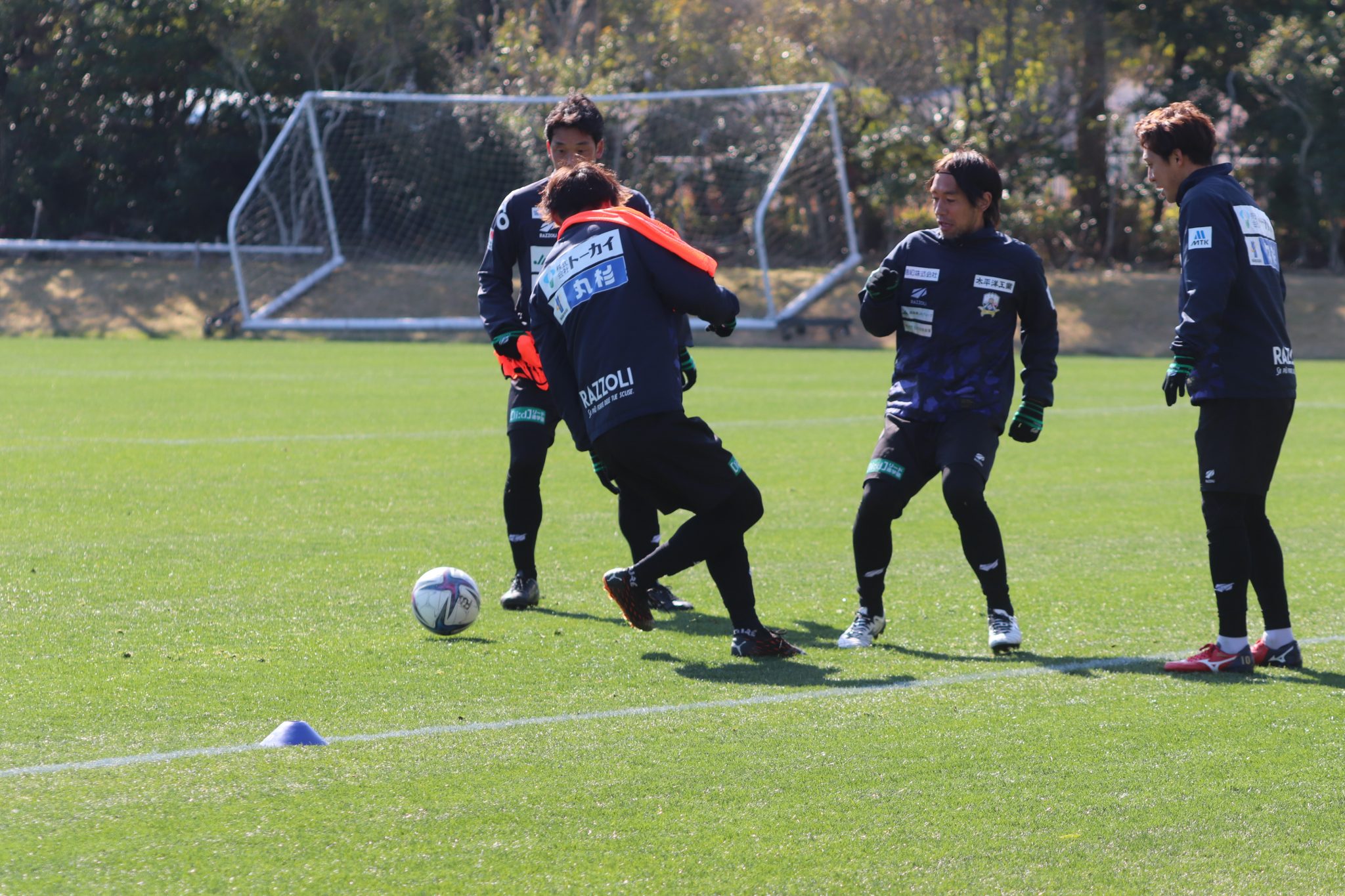その後はボール回しをするグループとサイドからのクロスを合わせるトレーニングを行うグループに分かれてトレーニングを実施し、フィールドプレーヤーの全体練習は終了となりました。