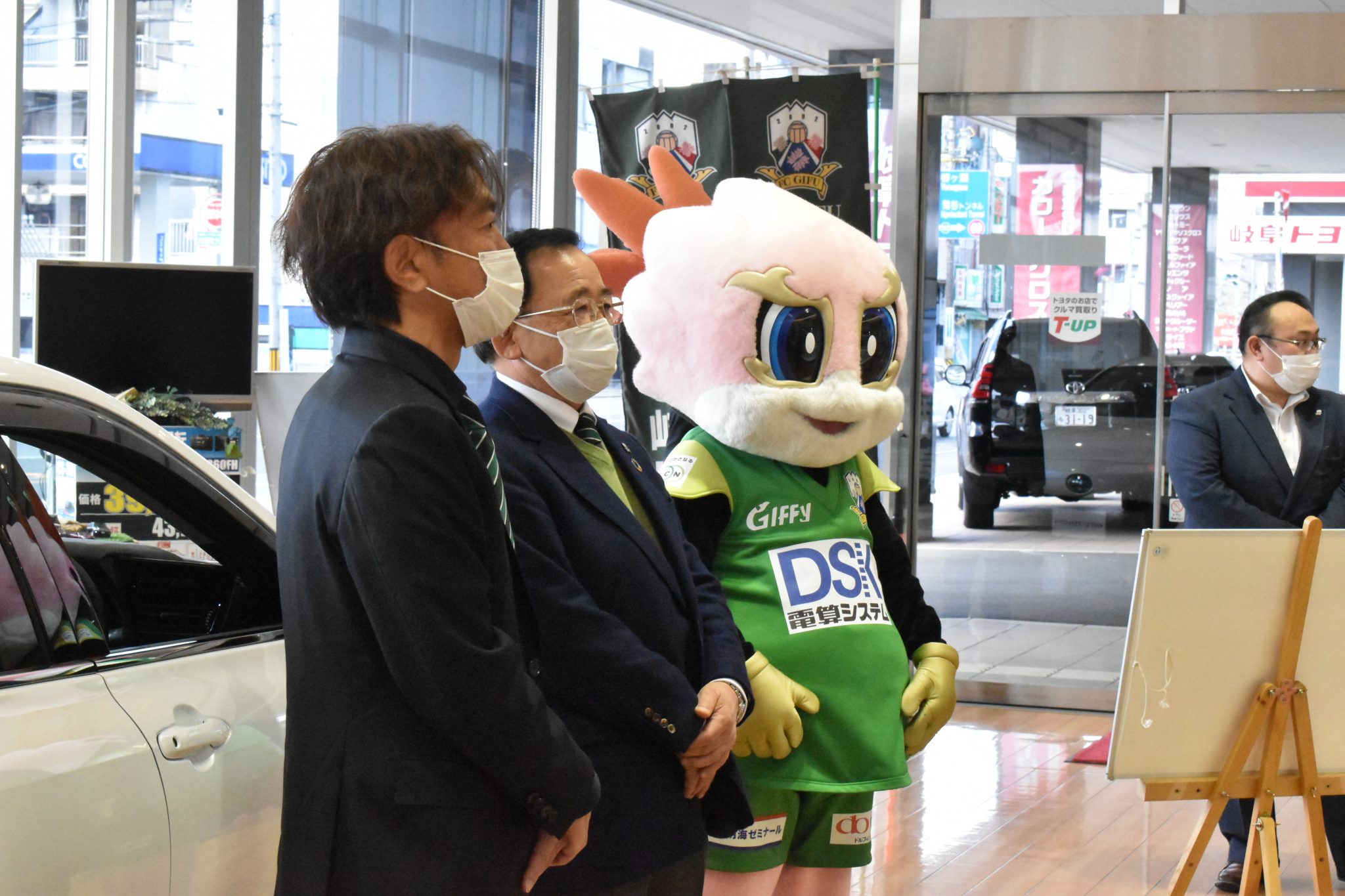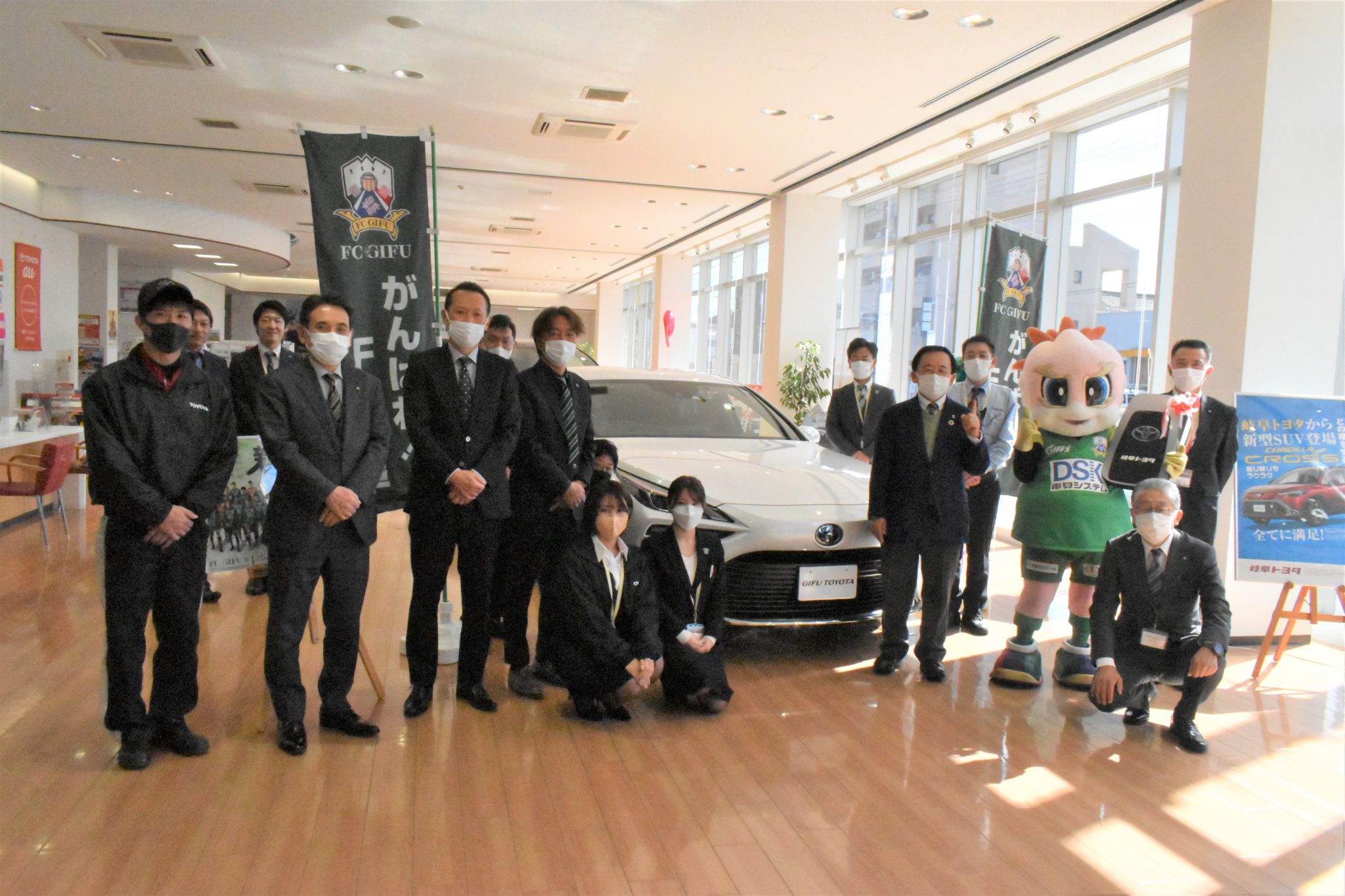 岐阜トヨタ自動車株式会社様より、FC岐阜の応援とチームの快進撃を願って、CO₂排出ゼロの水素で走る車「MIRAI」を三浦俊也監督の監督車としてお貸し頂けることとなり、2月24日(木)岐阜市の岐阜トヨタ自動車本社にて、納車式が行われました。