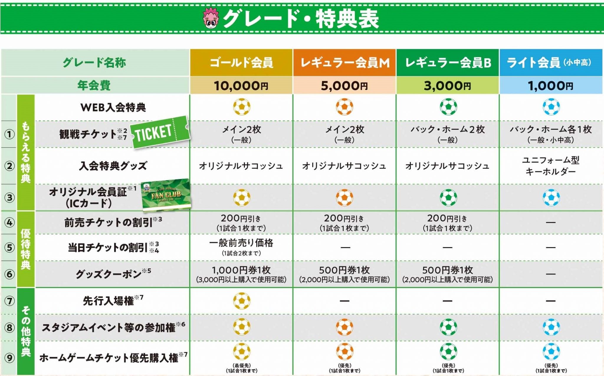 ただし、WEB入会の方は『ホームゲームチケット優先購入権』および『前売りチケット割引(ライト会員は除く)』は、