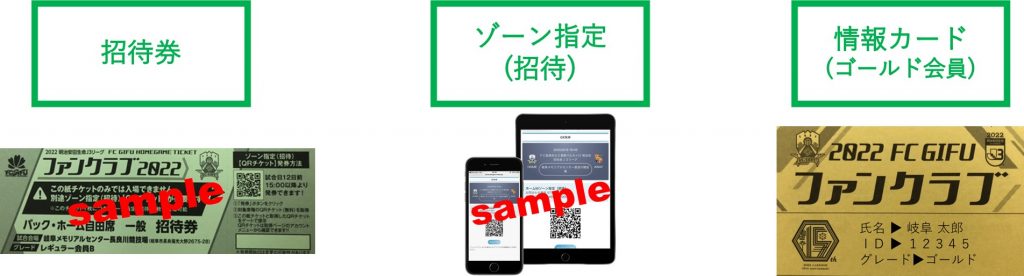 ②「招待券」と「ゾーン指定(招待)」と「情報カード(ゴールド会員)」