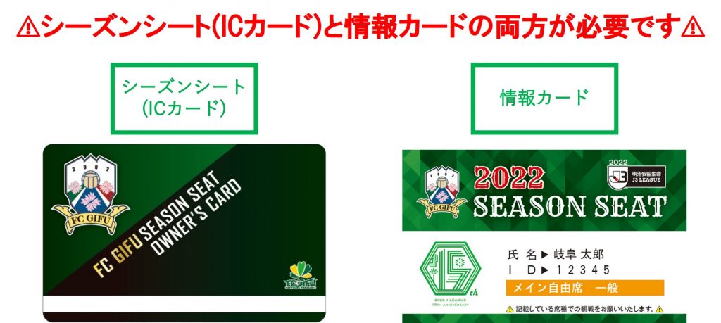 2022シーズンシート(ICカード)入場する際は、「シーズンシート(ICカード)」と「情報カード」の両方が必要となります。