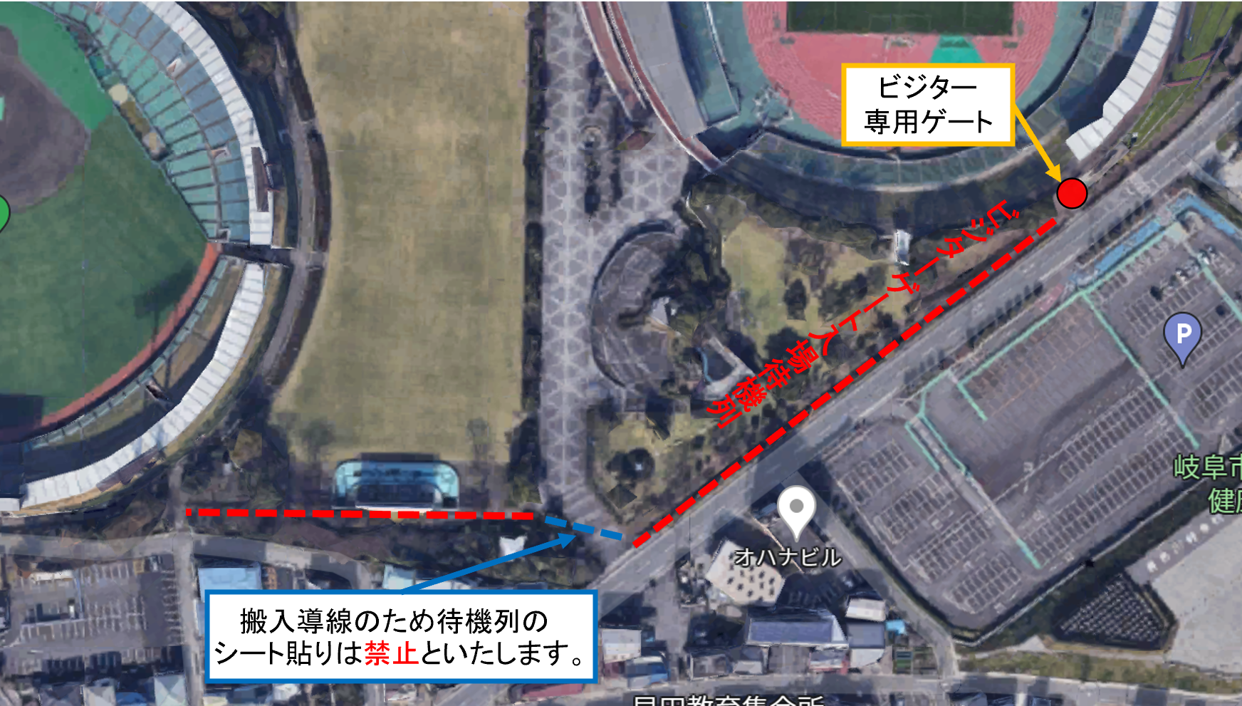 バッグ・ビジター自由席でご観戦される皆様はビジター専用ゲートからの入場となります。