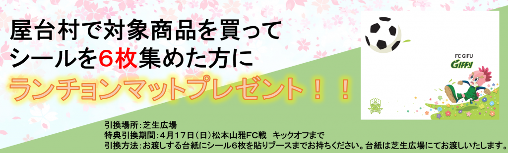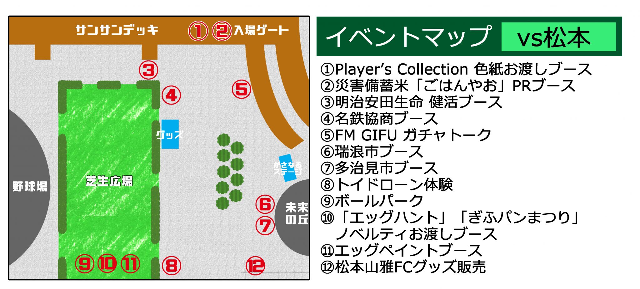先行入場/11:30~ 【ホームチーム横断幕設置時間】 10:30~11:10 14:03キックオフ スタジアムへ来場される際に映像を参考にしていただくなどぜひご活用ください。 ※試合当日になりましたらご覧いただけます。 ★FC岐阜応援隊 『SKE48』来場 FC岐阜応援隊の『SKE48』から隊長の北野瑠華さん、副隊長の太田彩夏さん、井田玲音名さん、松本慈子さんが来場し、スタジアムを華やかに盛り上げます! ★ぎふパンまつり 11:00~ 【場所:屋台村】 大人気の屋台村に美味しいパンが勢ぞろい!パンを買ってシールを6枚集めた方にランチョンマットをプレゼントします! ★名鉄協商ブース・モンチッチ登場 11:00~ 【場所:芝生広場東】 MKPポイントカードやカリテコのPRブースを開催します! また、名鉄協商PR大使であるモンチッチがブースを盛り上げます! さらに、MKPポイントカード入会でモンチッチグッズや名鉄協商オリジナルグッズ等プレゼント! ★ファンクラブデー 【場所:スタジアム】 FC岐阜ファンクラブに入会してもっとホームゲームを楽しもう! ※参加には2022FC岐阜ファンクラブ会員への入会が必要です。 ※未就学児の同伴者についてはイベントごとに異なりますので、各イベント詳細をご確認ください。 新1年生のお友達!ランドセル花道をつくって、選手をピッチに送り出そう! ※事前募集終了 ★竹田忠嗣さんサイン会・抽選会 10:00~10:45 【場所:グッズ売店横】 2018ー2021年までFC岐阜に所属し、先日引退を発表した竹田忠嗣さんによるサイン会を開催します。 ≪サイン会、抽選会参加条件について≫ 1会計につき複数点購入の場合も1回とカウントさせていただきます。※レシートの提示が必要となります ★2022FC岐阜まつりプレイヤーズコレクションチケット購入者選手サイン色紙お渡しブース 11:00~ 【場所:サンサンデッキ】 当日の来場者様プレゼントとして用意していた「選手サイン色紙」を、プレイヤーズコレクションのチケットをお買い求めいただいたお客様を対象に、ホームゲームにてお渡しします。