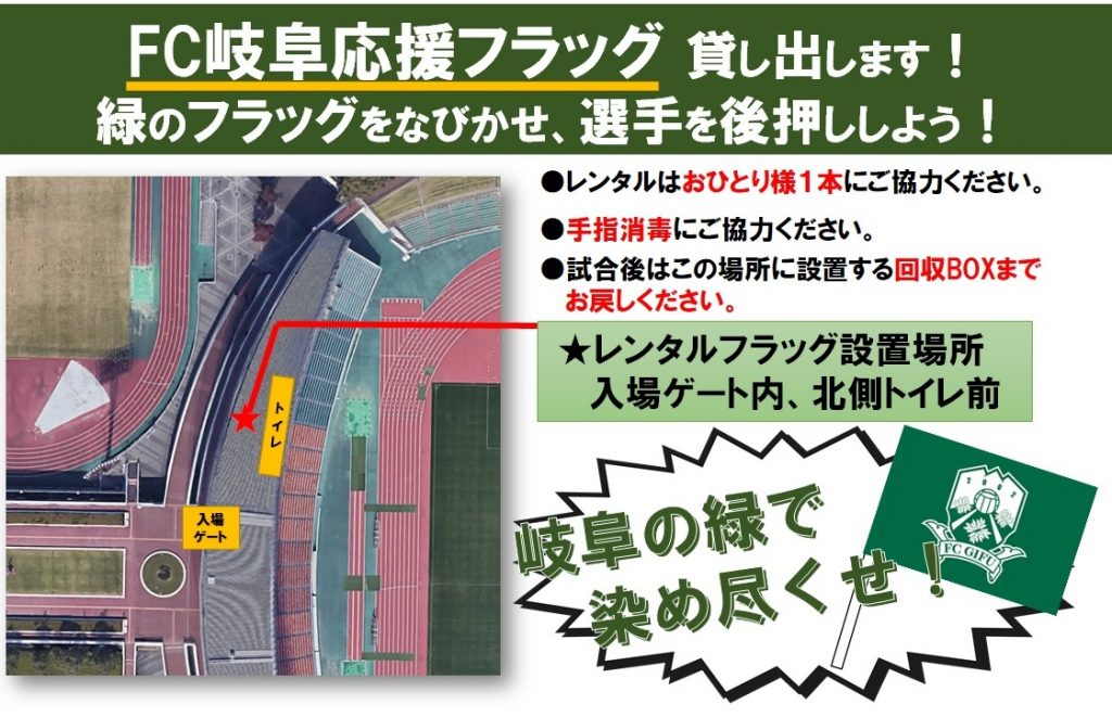 「岐阜の緑で染め尽くせ!」入場ゲート内にレンタルフラッグを設置します。