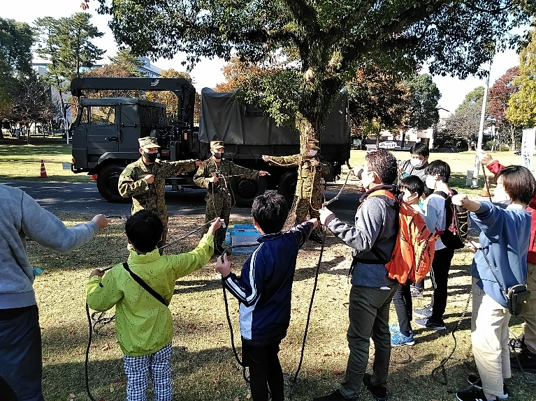 自衛隊員と一緒にロープ結びを体験してみよう!制服試着で自衛隊体験も!