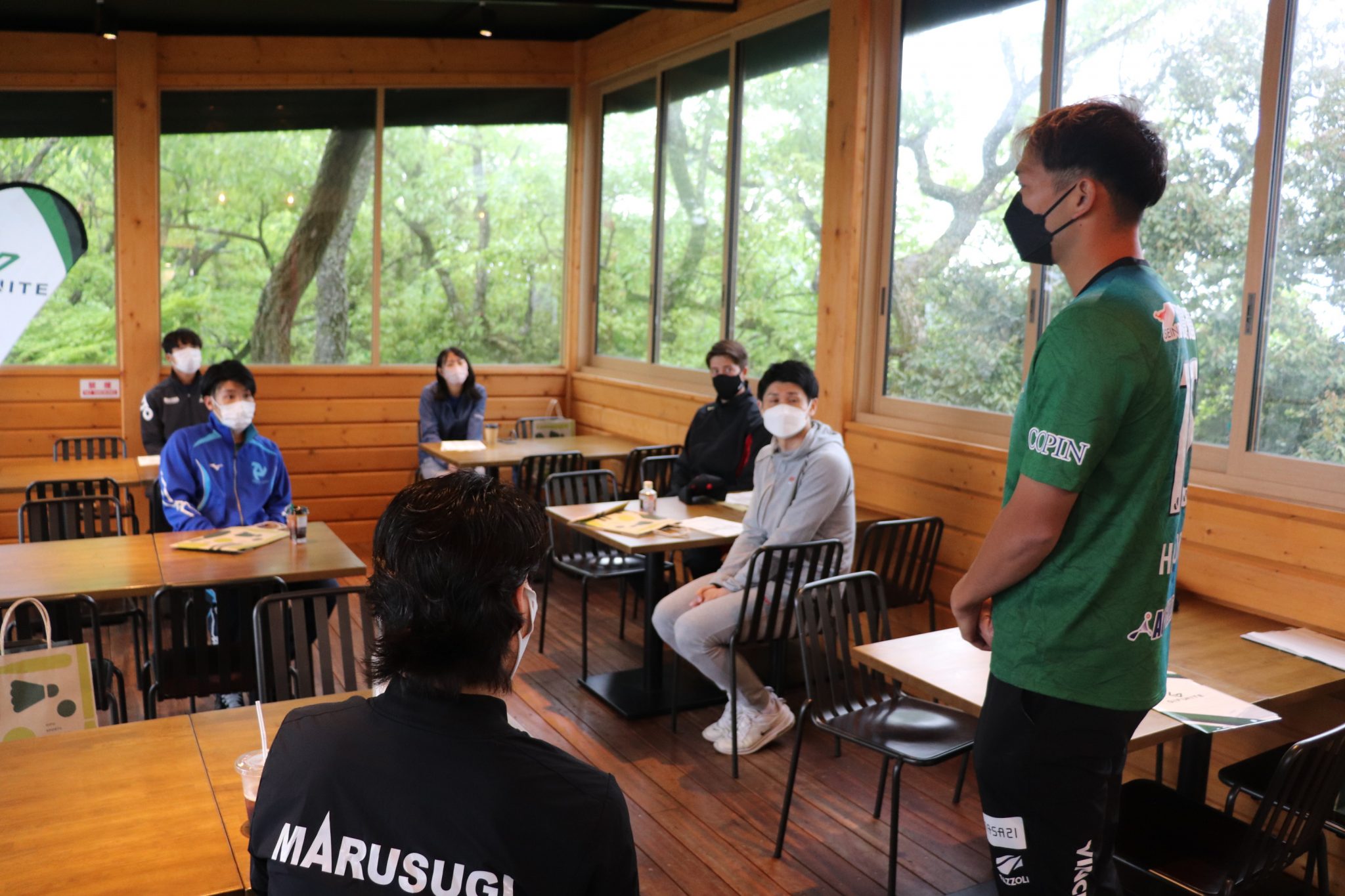選手同士で自己紹介をおこない、意見交換などで交流を深めました。