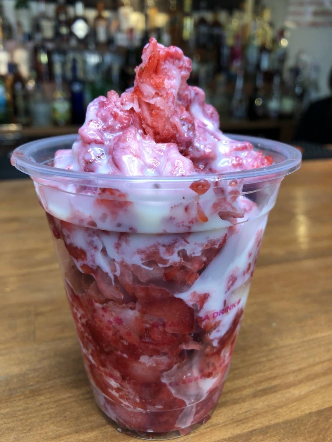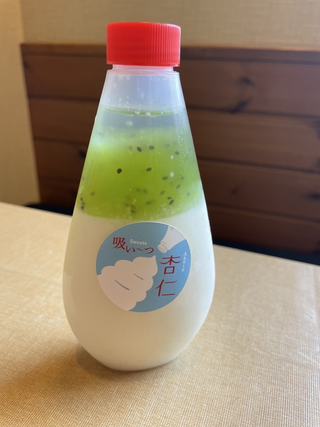 岐阜洞戸で採れた完熟のキウイフルーツをシロップにして、FC岐阜のユニホームカラーをイメージした見た目も味も他に負けない杏仁に仕上げました。