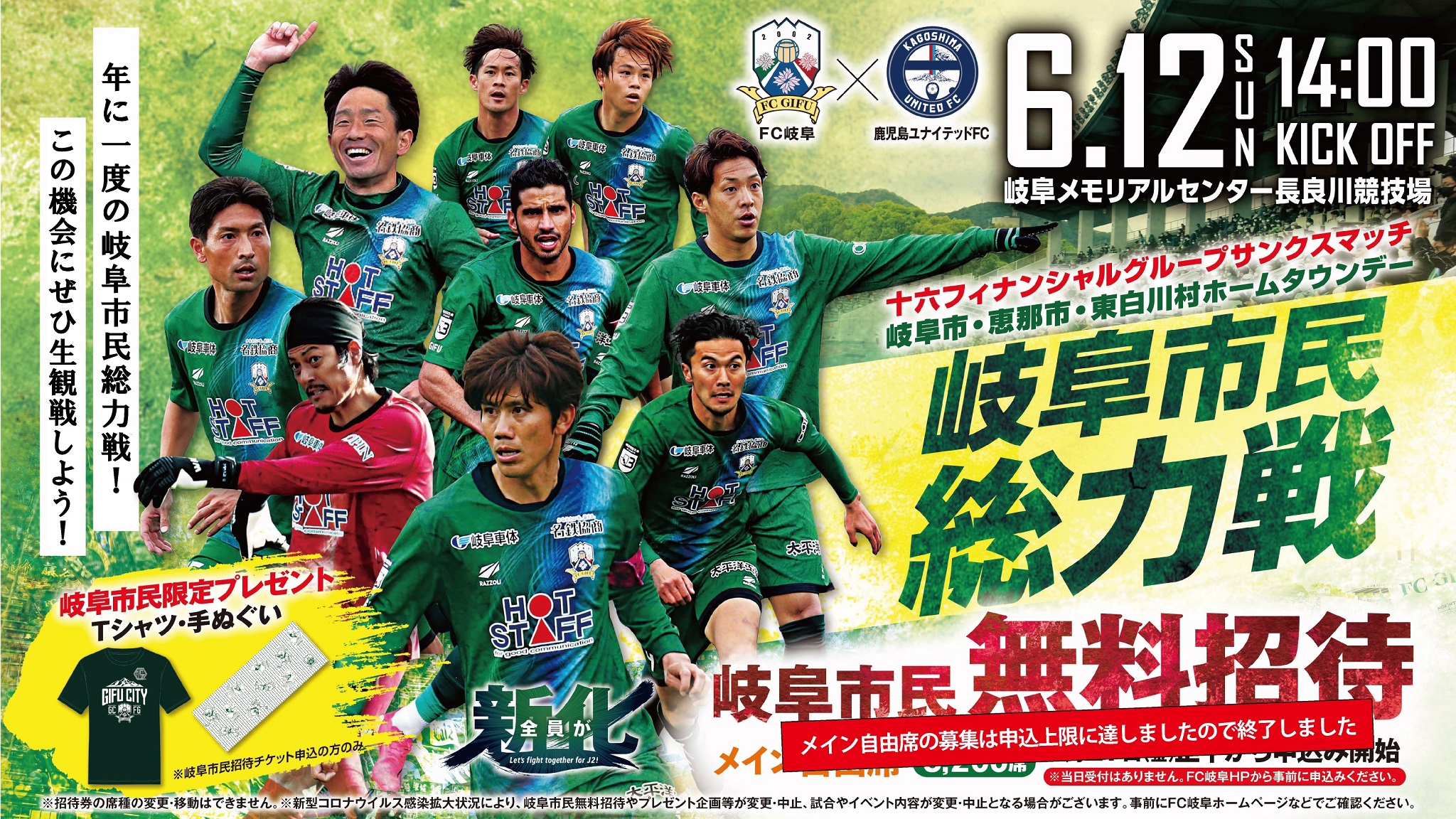 【岐阜市ホームタウンデーテント オープン時間 追記】6/12(日)14:03 vs鹿児島ユナイテッドFC、試合情報