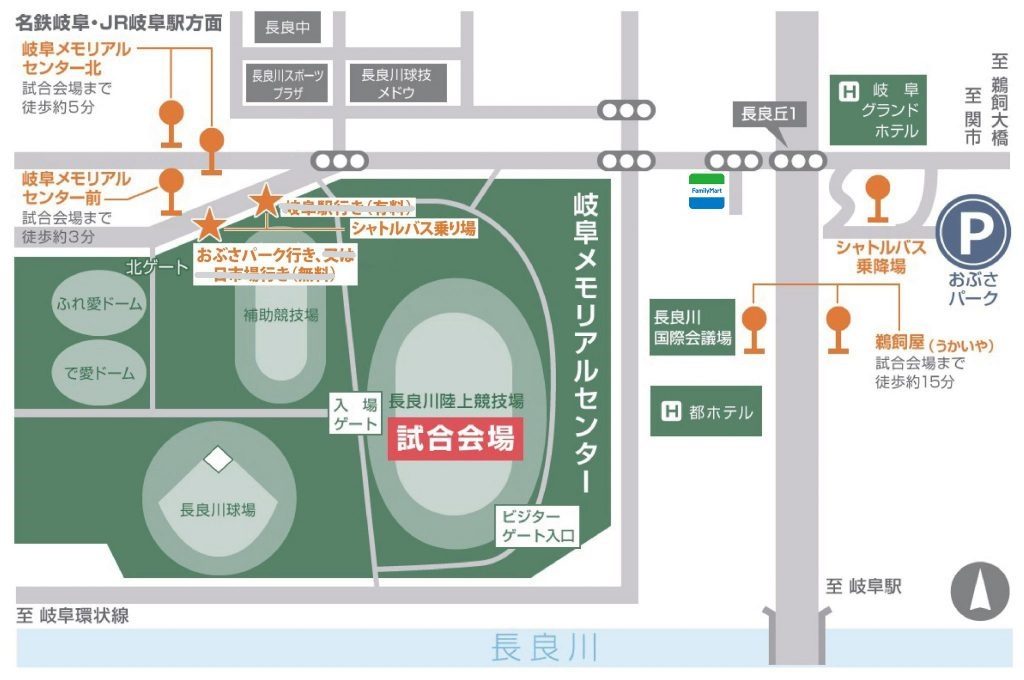 当日の駐車場状況については、公式ホームページ又はFC岐阜公式Twitterにて最新情報を更新いたしますのでご覧ください。