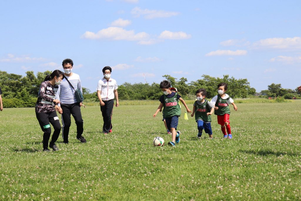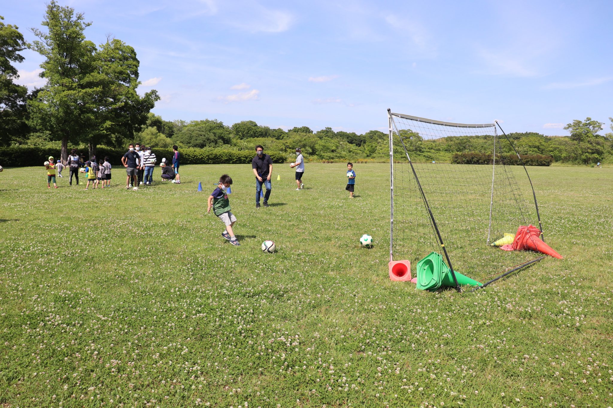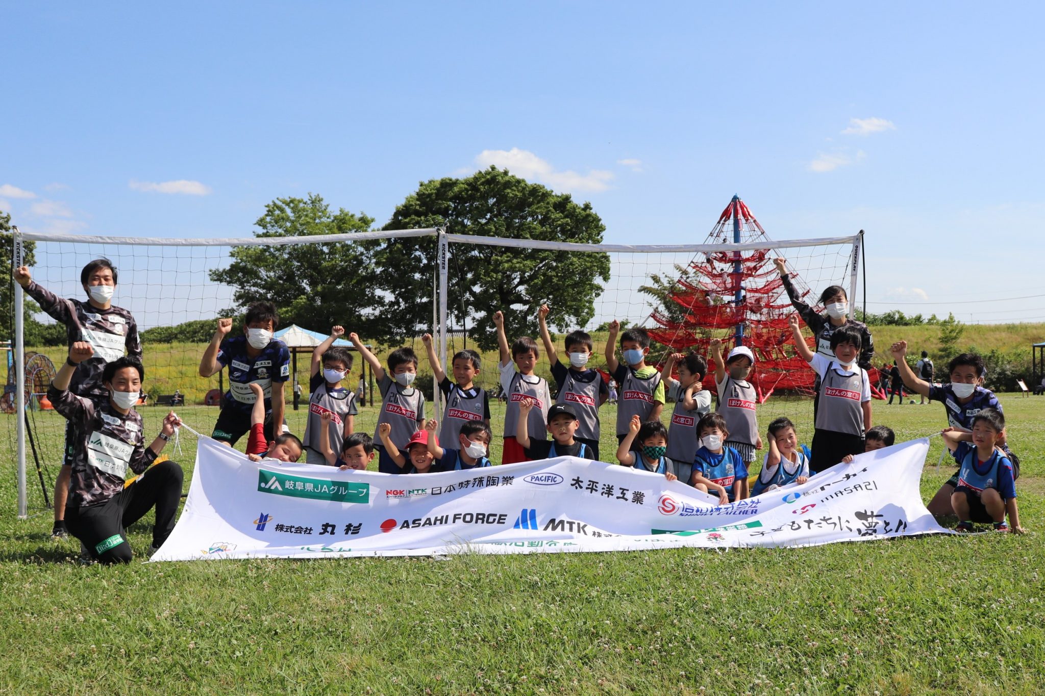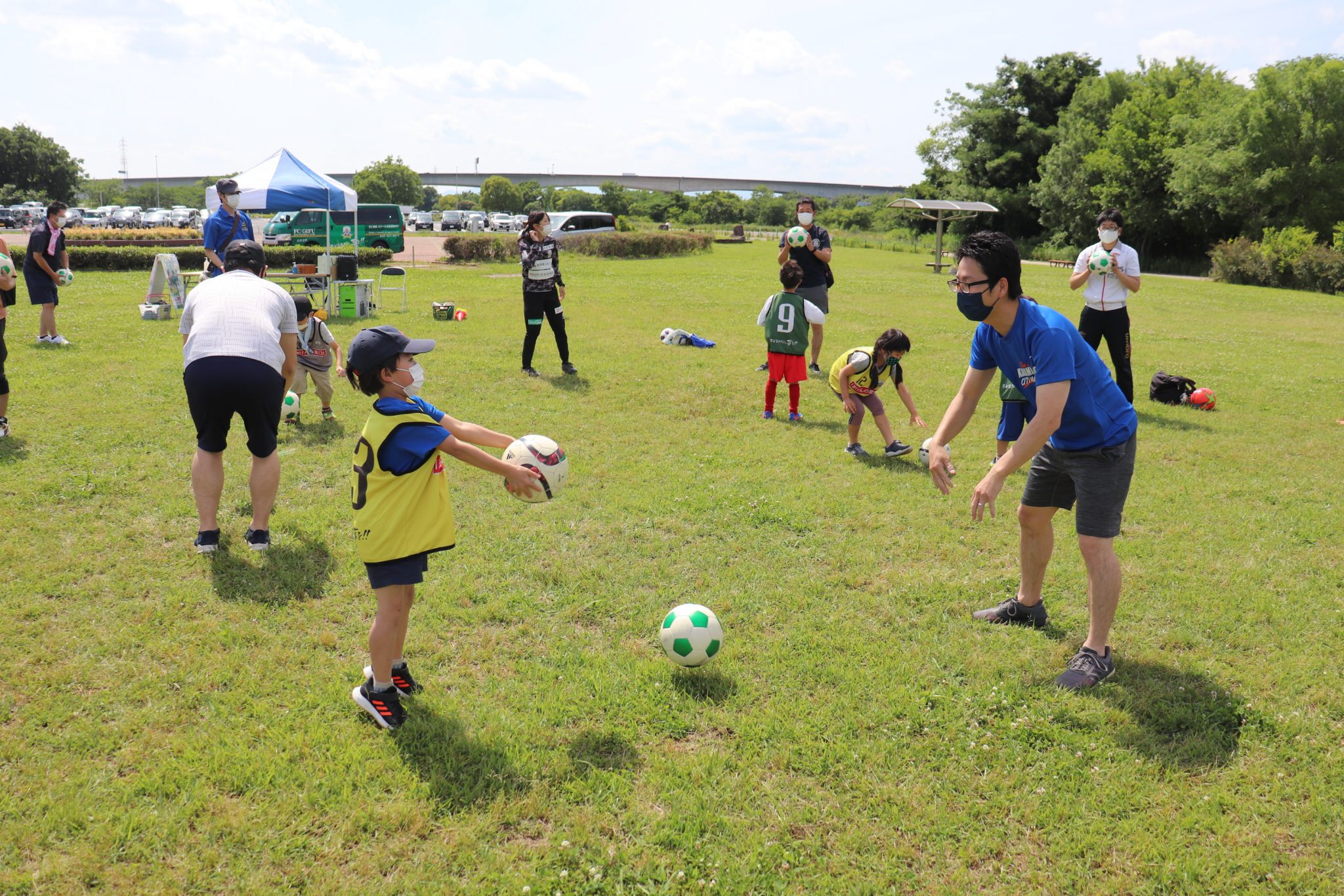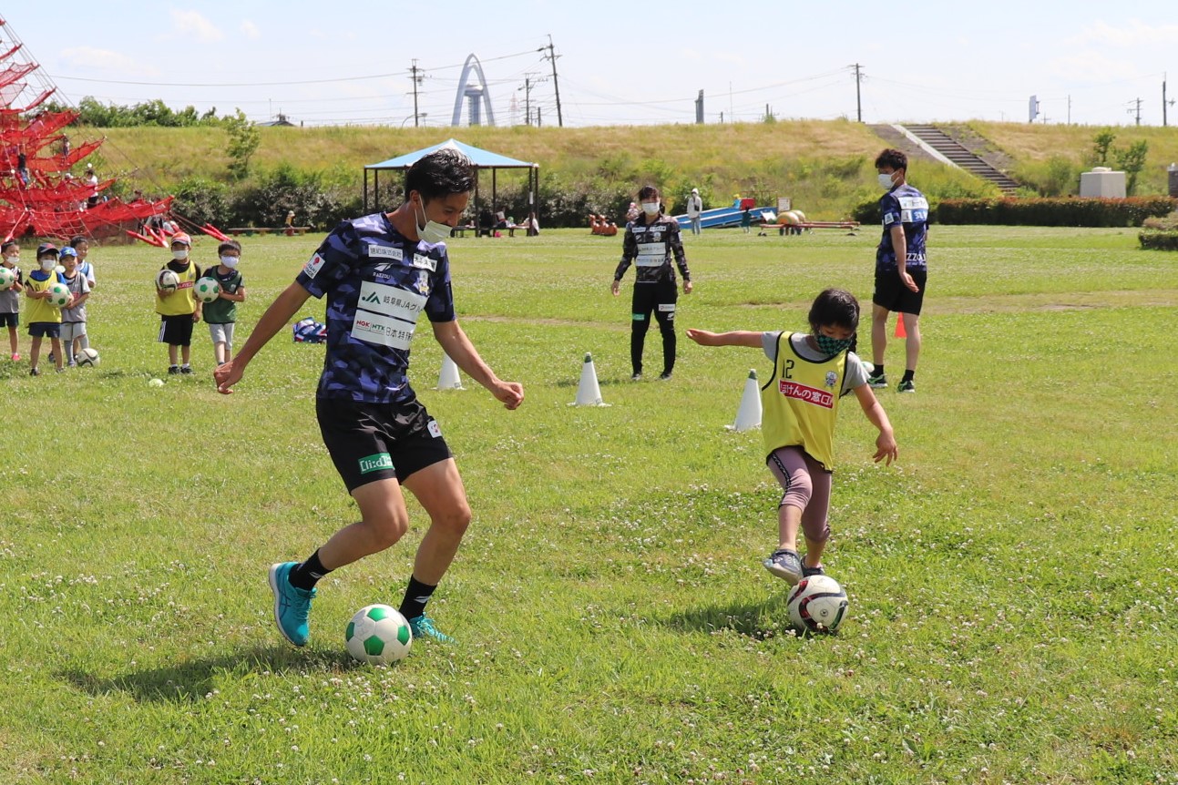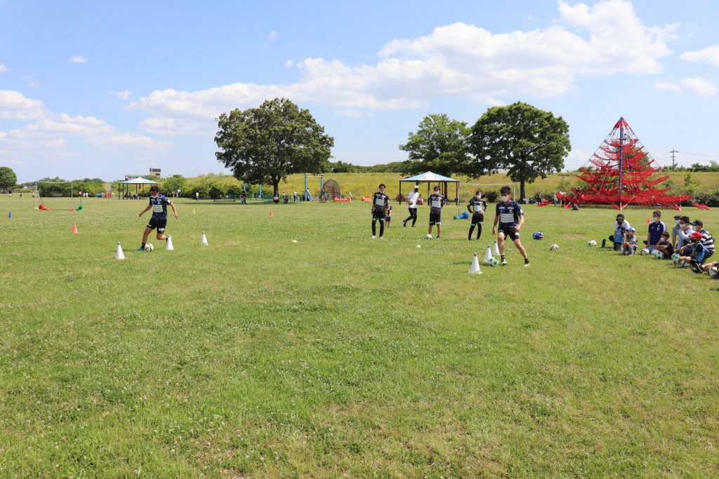 5月28日(土)各務原市の「国営木曽三川公園 かさだ広場」にて、木曽三川公園管理センター 河川環境楽園様主催のサッカー教室が開催されました。