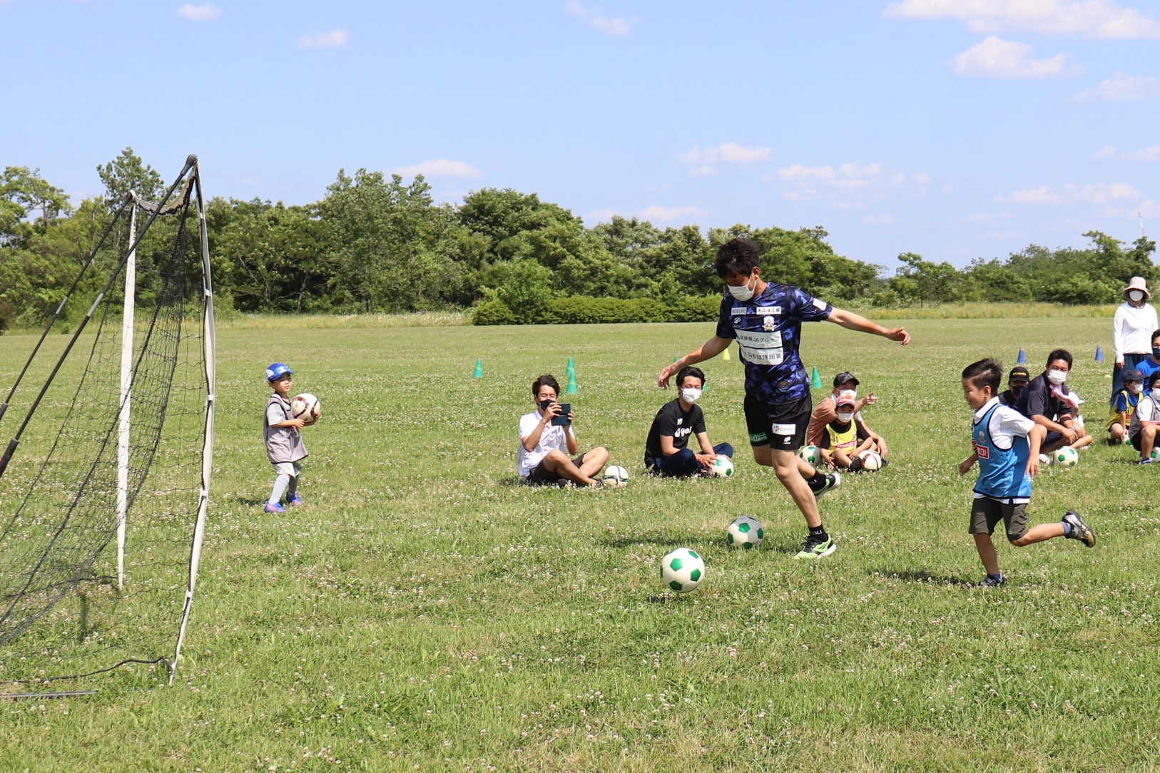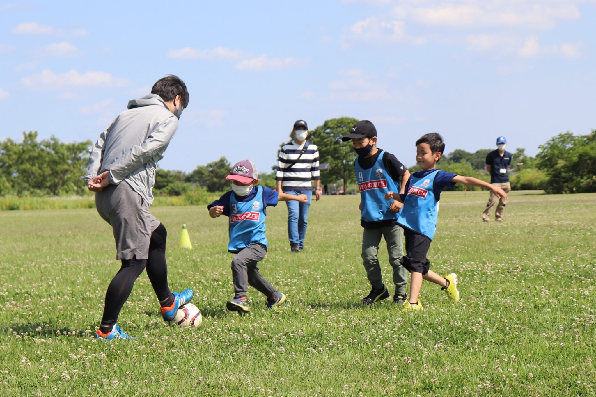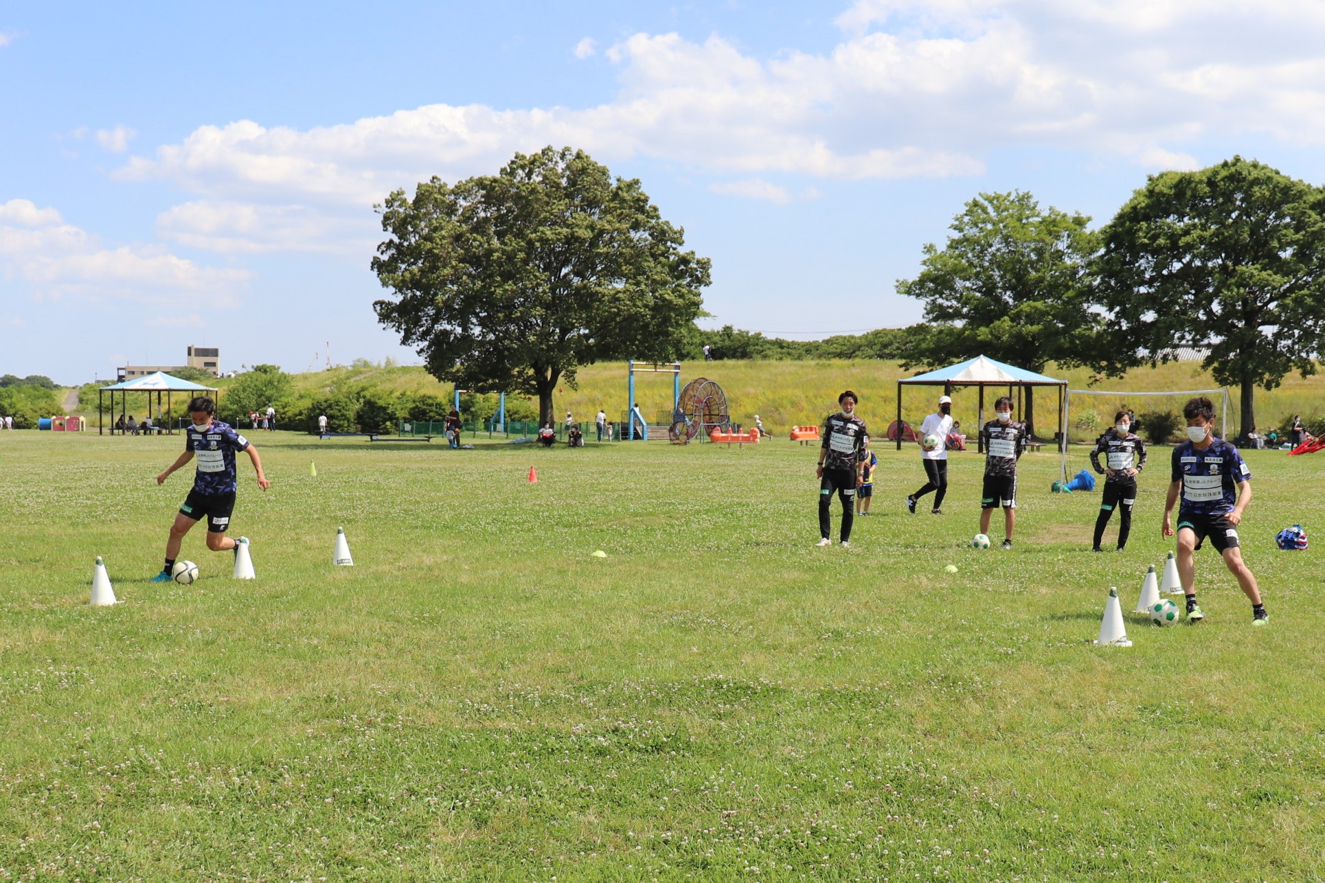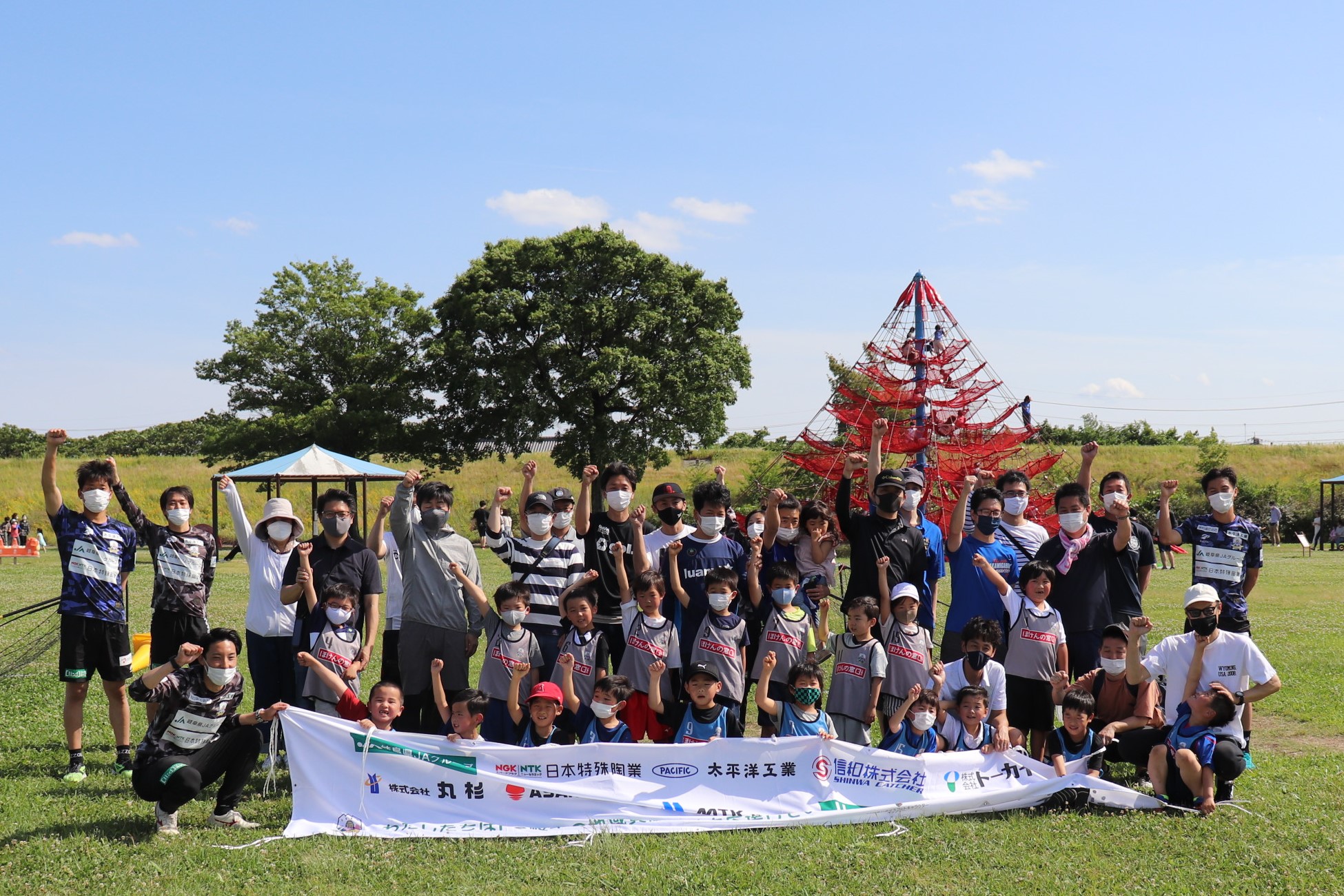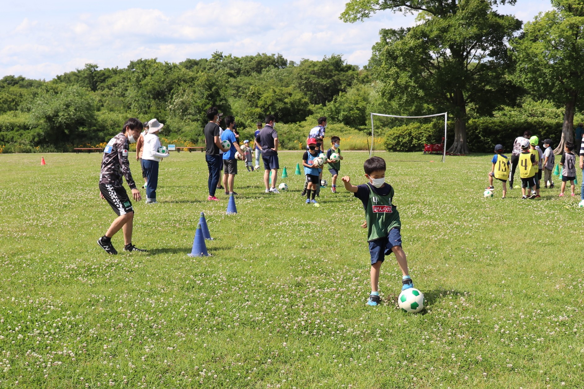 5月28日(土)各務原市の「国営木曽三川公園 かさだ広場」にて、木曽三川公園管理センター 河川環境楽園様主催のサッカー教室が開催されました。