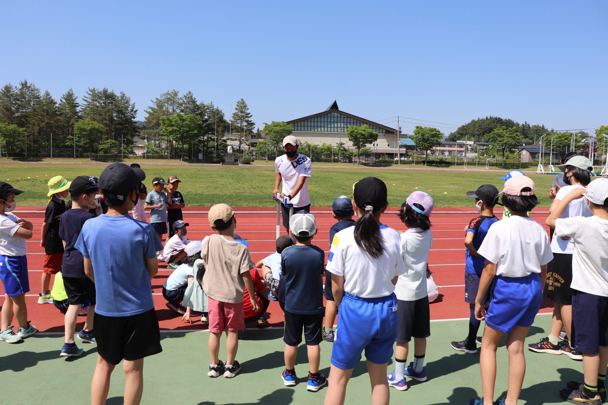 5月29日(日)に、高山市にある中山公園陸上競技場にて、和戸 達哉 選手(陸上:紀の国わかやま国体110mハードル1位)をお迎えし、コープぎふpresentsFC岐阜かけっこ教室を開催しました。