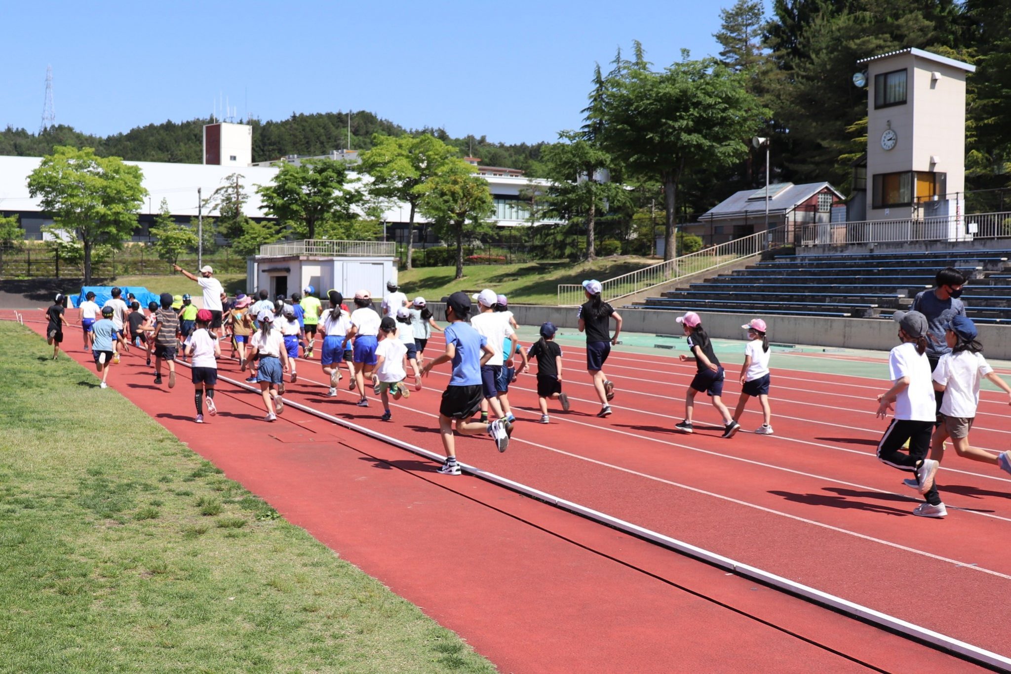 最後は恒例の和戸選手と50mの全力競争です。※和戸選手はハンデあり!
