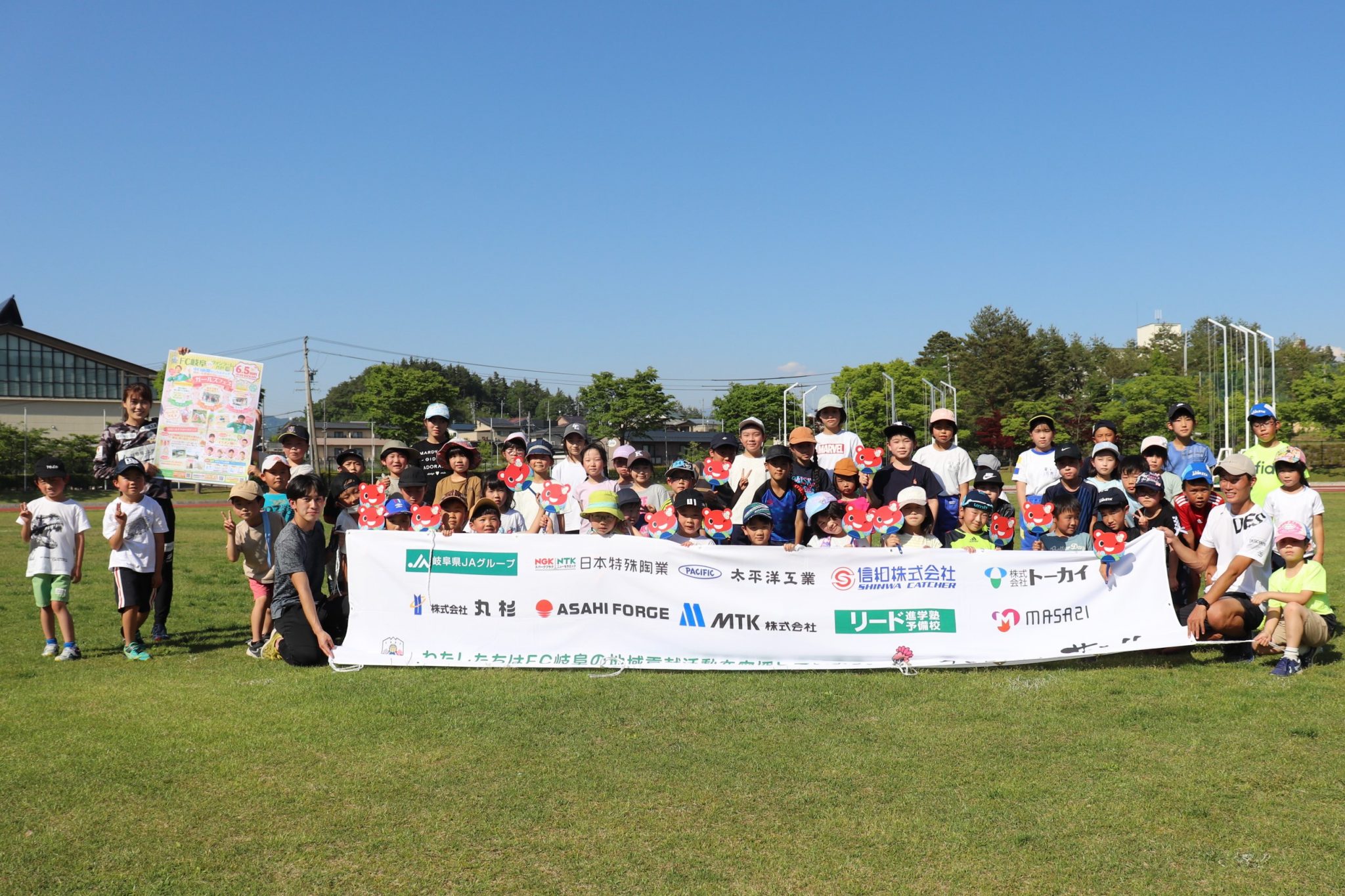 「全てのスポーツに通じる運動能力は走ることから」であると考えており、2017年より県内の陸上競技場にて「FC岐阜かけっこ教室」を開催しています。今年はFC岐阜オフィシャルパートナーである「生活協同組合コープぎふ」様が協賛していただき第1回目の開催をなりました。