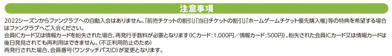 ※ファンクラブへの自動入会はございません。「前売チケットの割引」等の特典もシーズンシートには付与されておりませんので、予めご承知おきください。