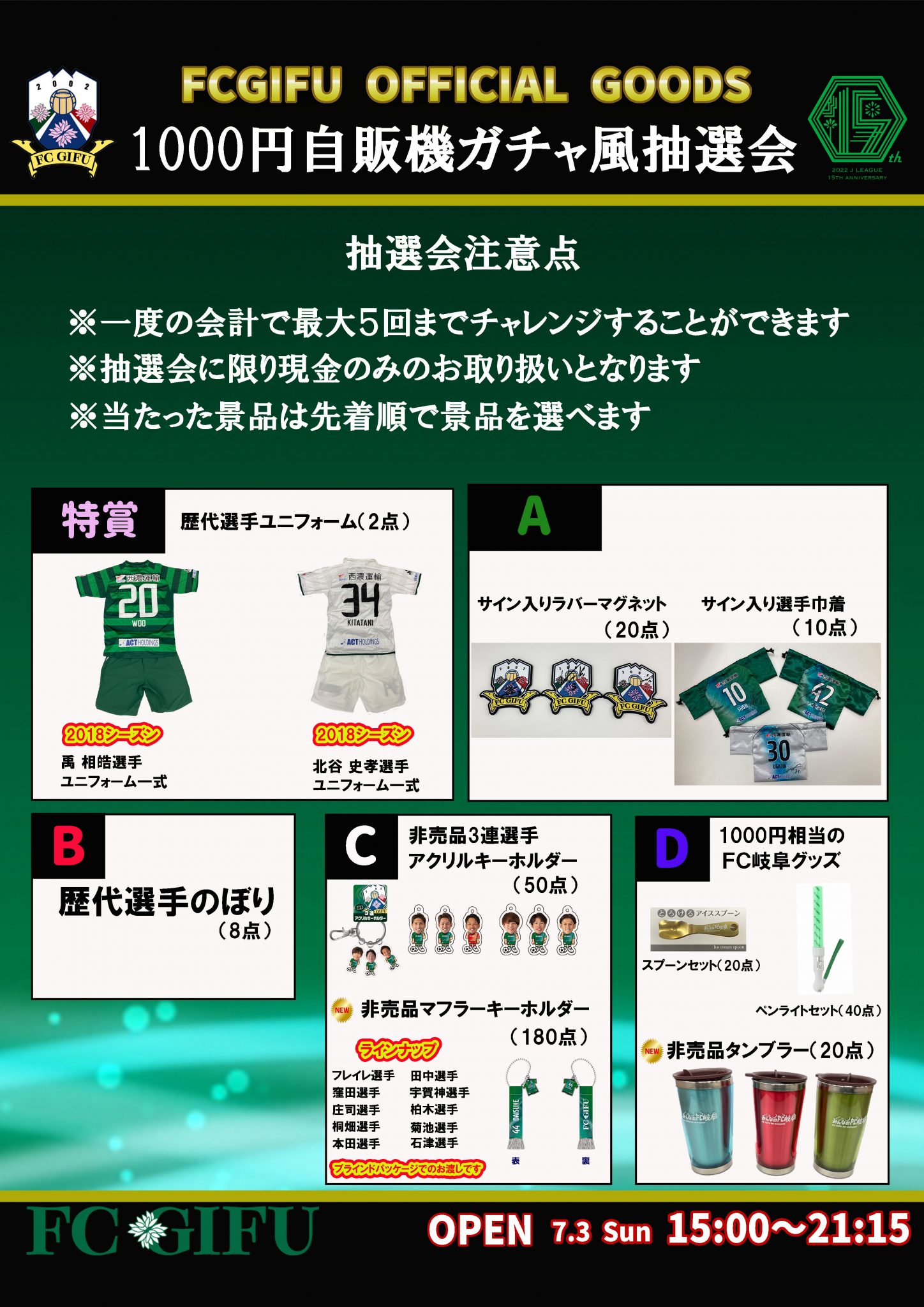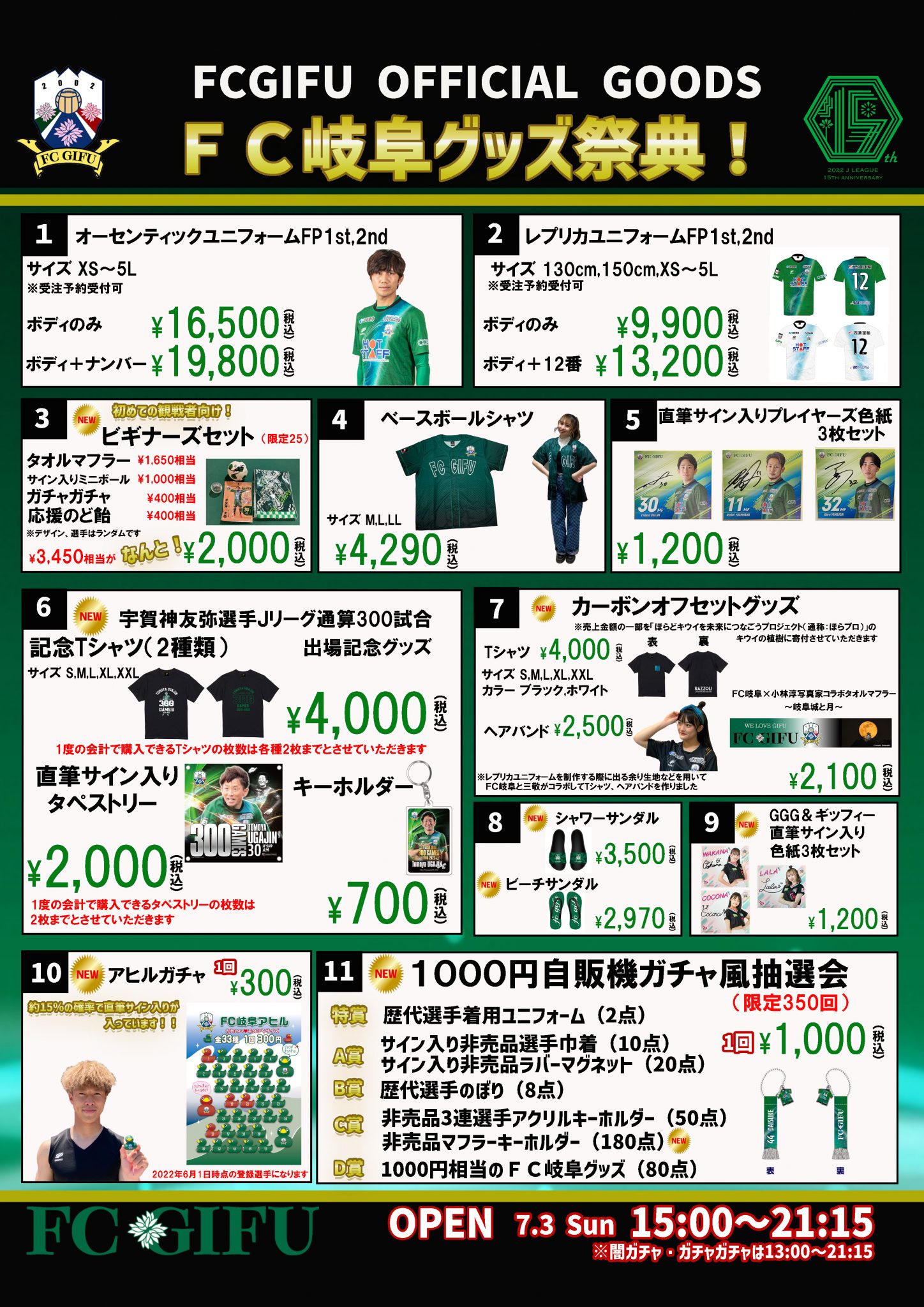 グッズショップ営業時間/15:00~試合終了後15分程度
