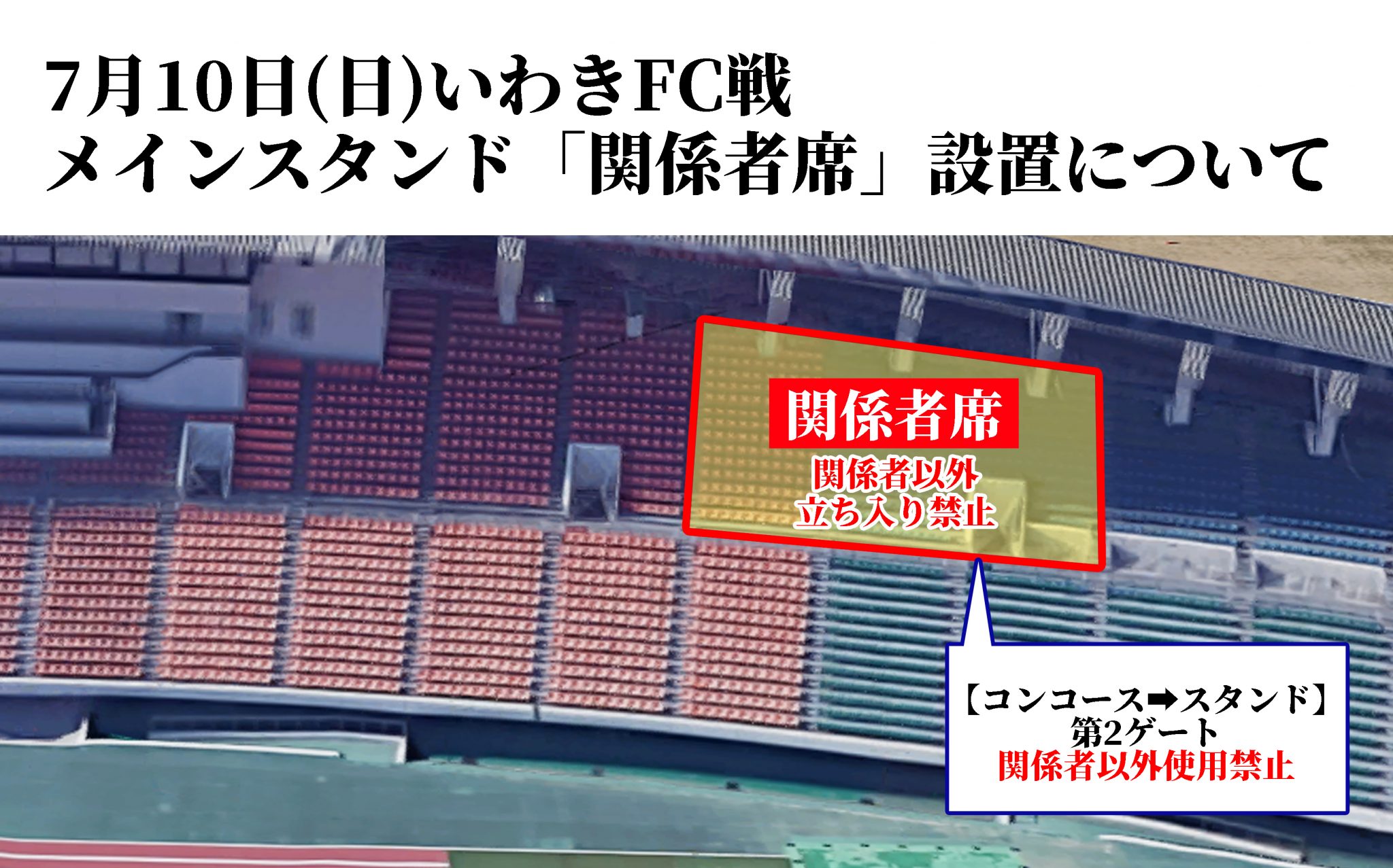 下図の赤枠部分において一般の方の観戦はできません。チケットのご購入、観戦の際は予めご了承いただきますようお願いいたします。