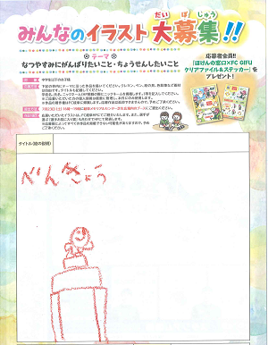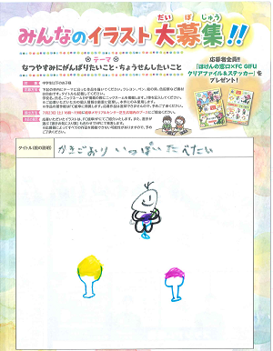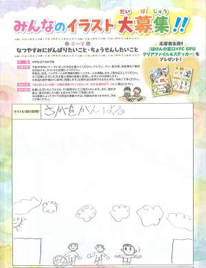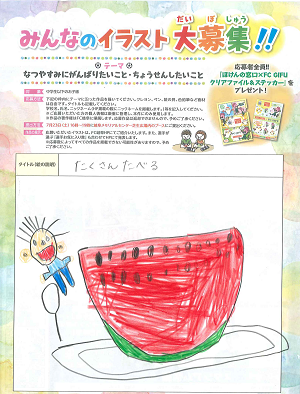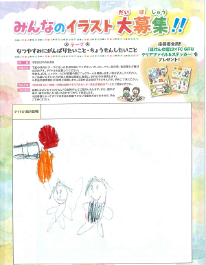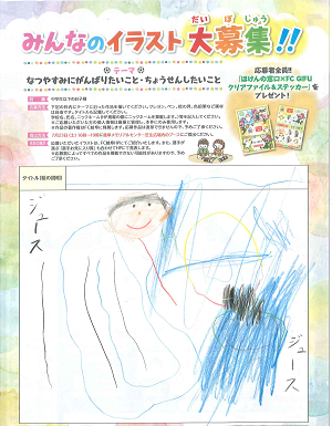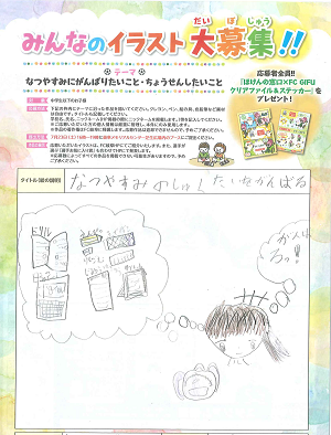 中学生以下のお子様を対象に、募集しました『なつやすみにがんばりたいこと・ちょうせんしたいこと』をテーマにしたイラストについて、多数のご応募ありがとうございました。