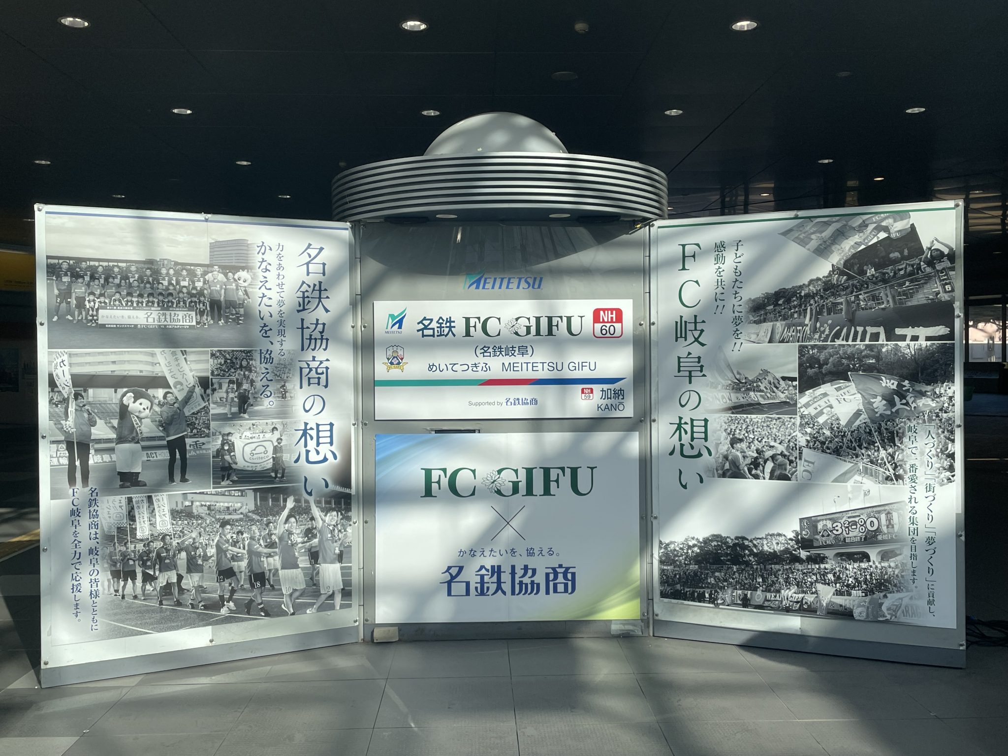 駅構内や改札前に選手のポスターなど、多くの写真が展示されておりますので、皆さまぜひ名鉄FC岐阜駅へ足を運んでみてください!