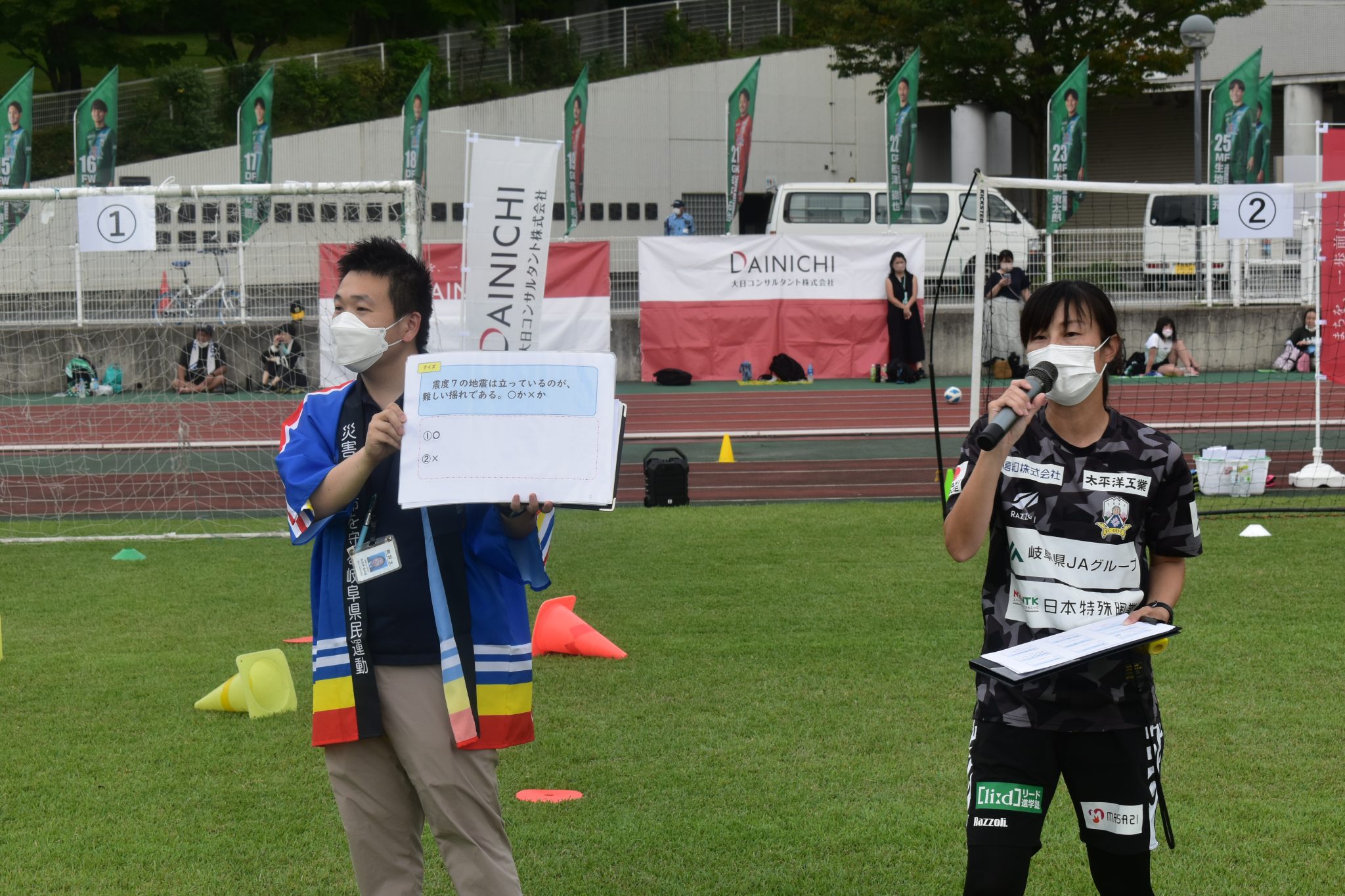 9月3日(土)岐阜メモリアルセンター補助陸上競技場にて、大日コンサルタントpresents「 防災について学ぼう!FC岐阜サッカー教室」が開催されました。