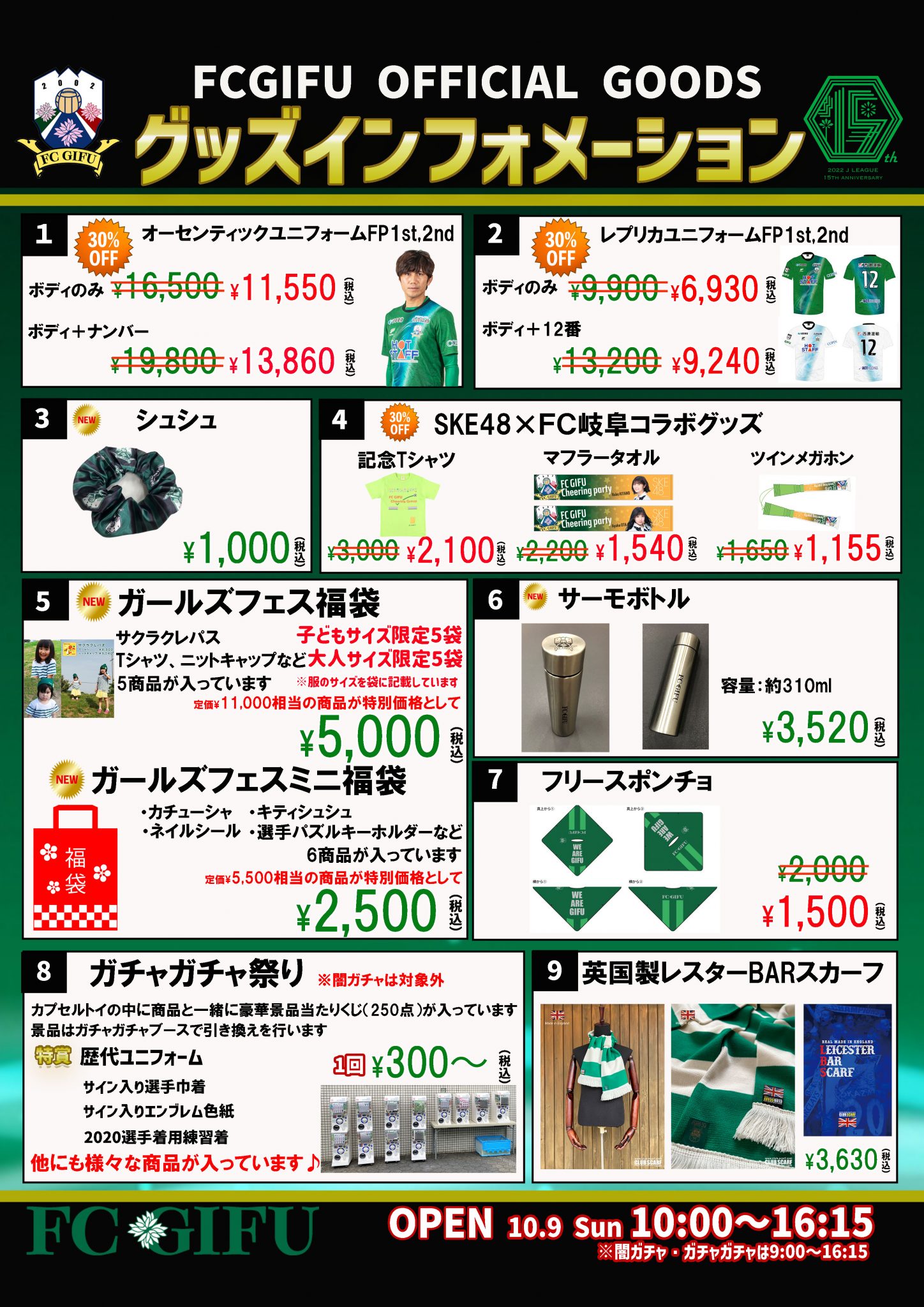 グッズショップ営業時間/10:00~試合終了後15分程度